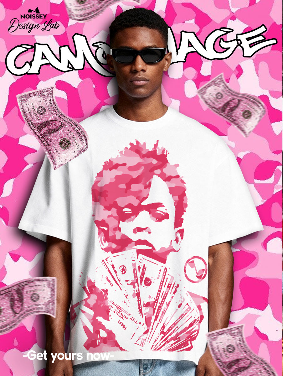 Pink Pearl Real Tree Art Grillz Print Boxy Oversized T-shirt