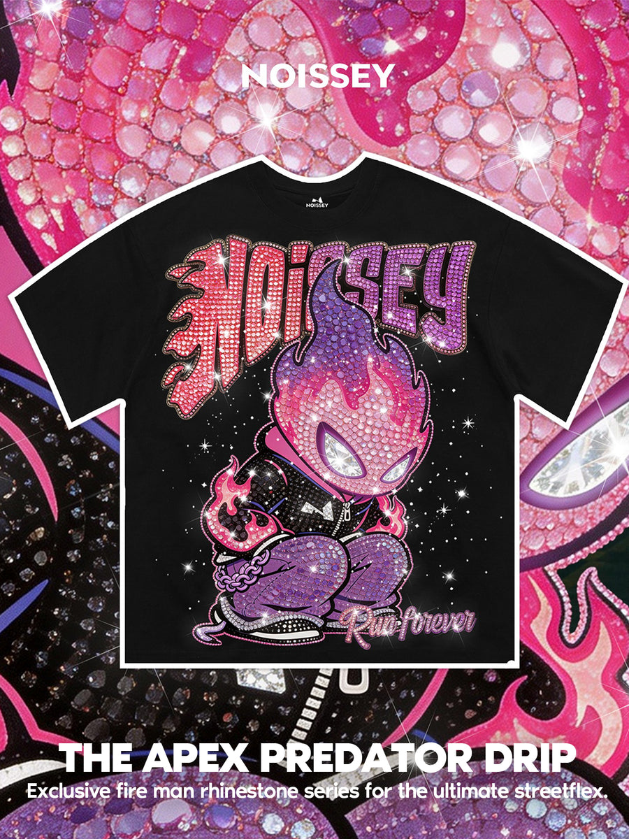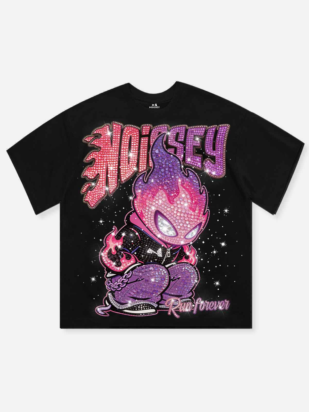 NOISSEY "Run Forever" Pink & Purple Fire Kid Diamond Art Graphic Heavyweight T-Shirt