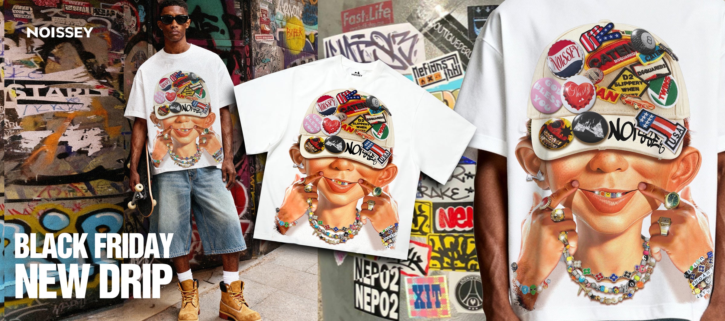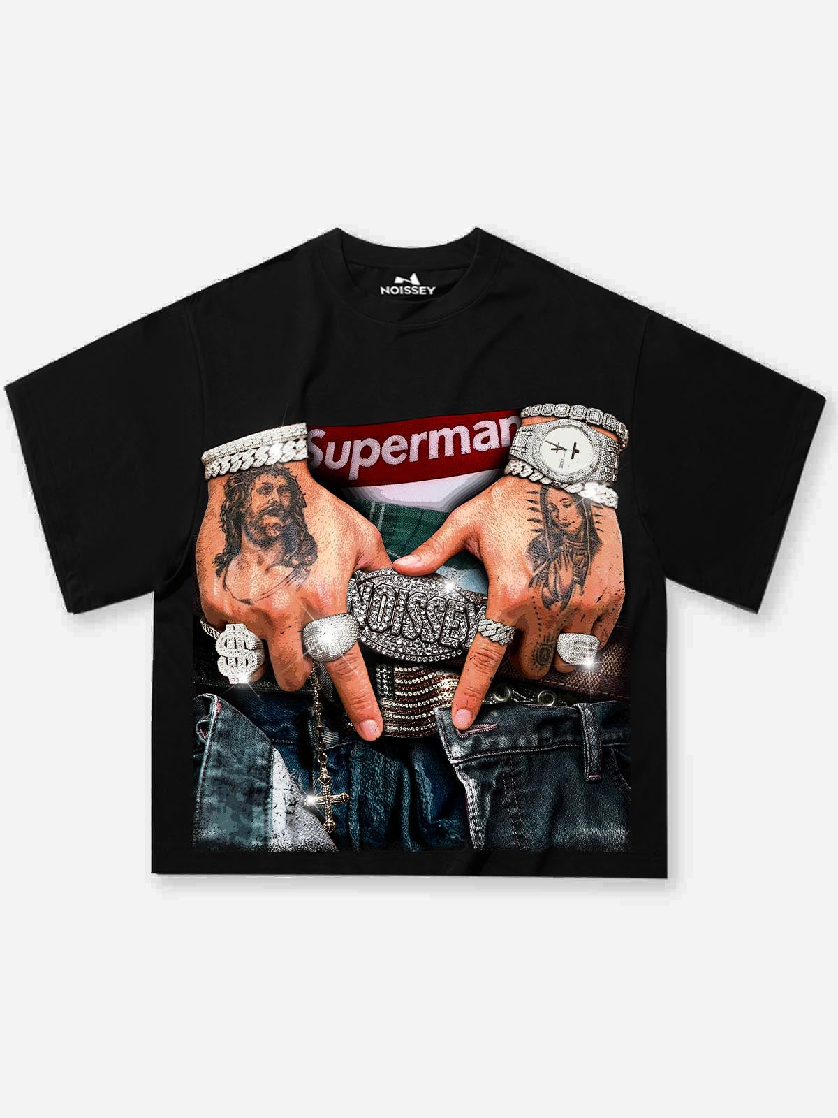 Bad Boy and His Badge Cap Print Boxy Oversized T-shirt