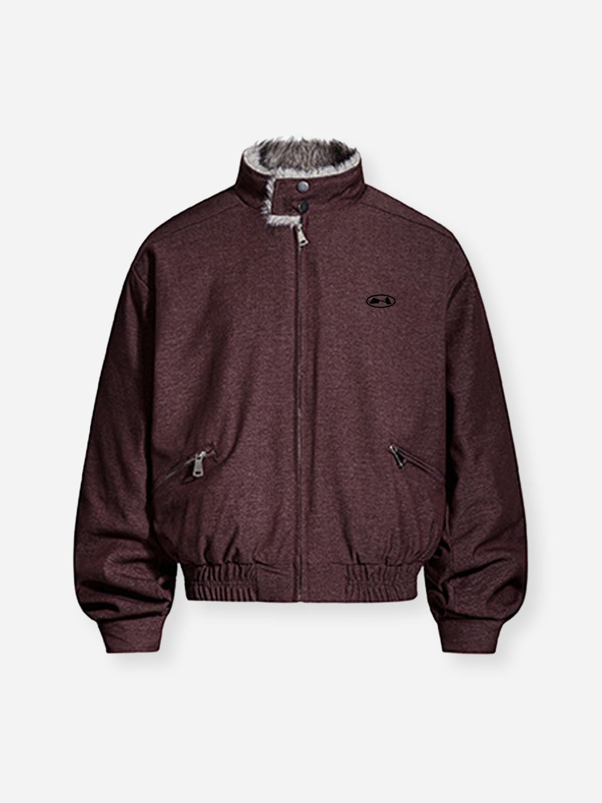 Unisex Stand-Collar Fur-Trimmed Fleece-Lined Jacket