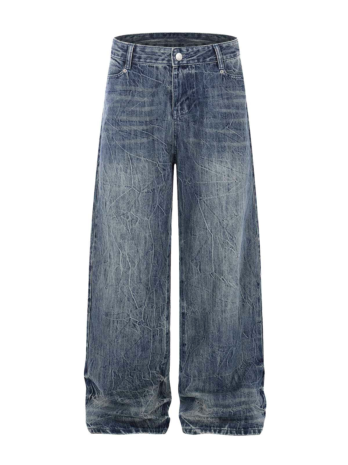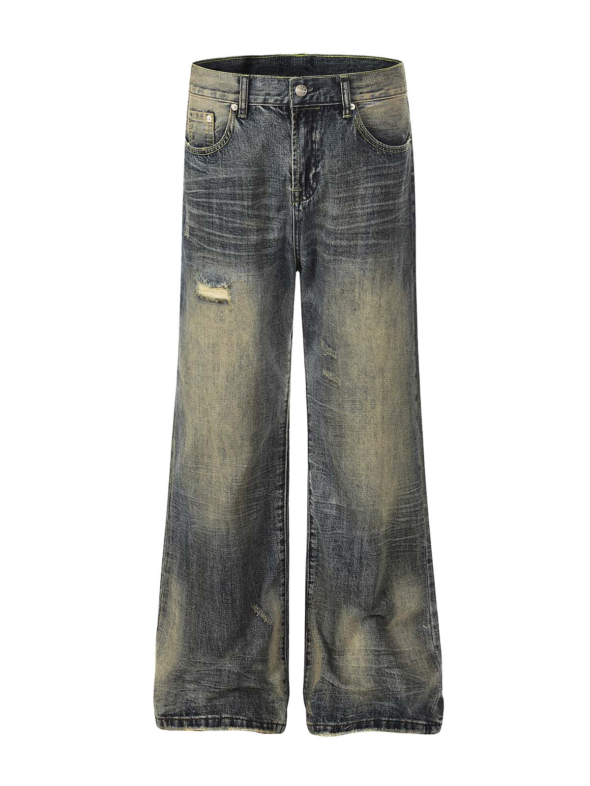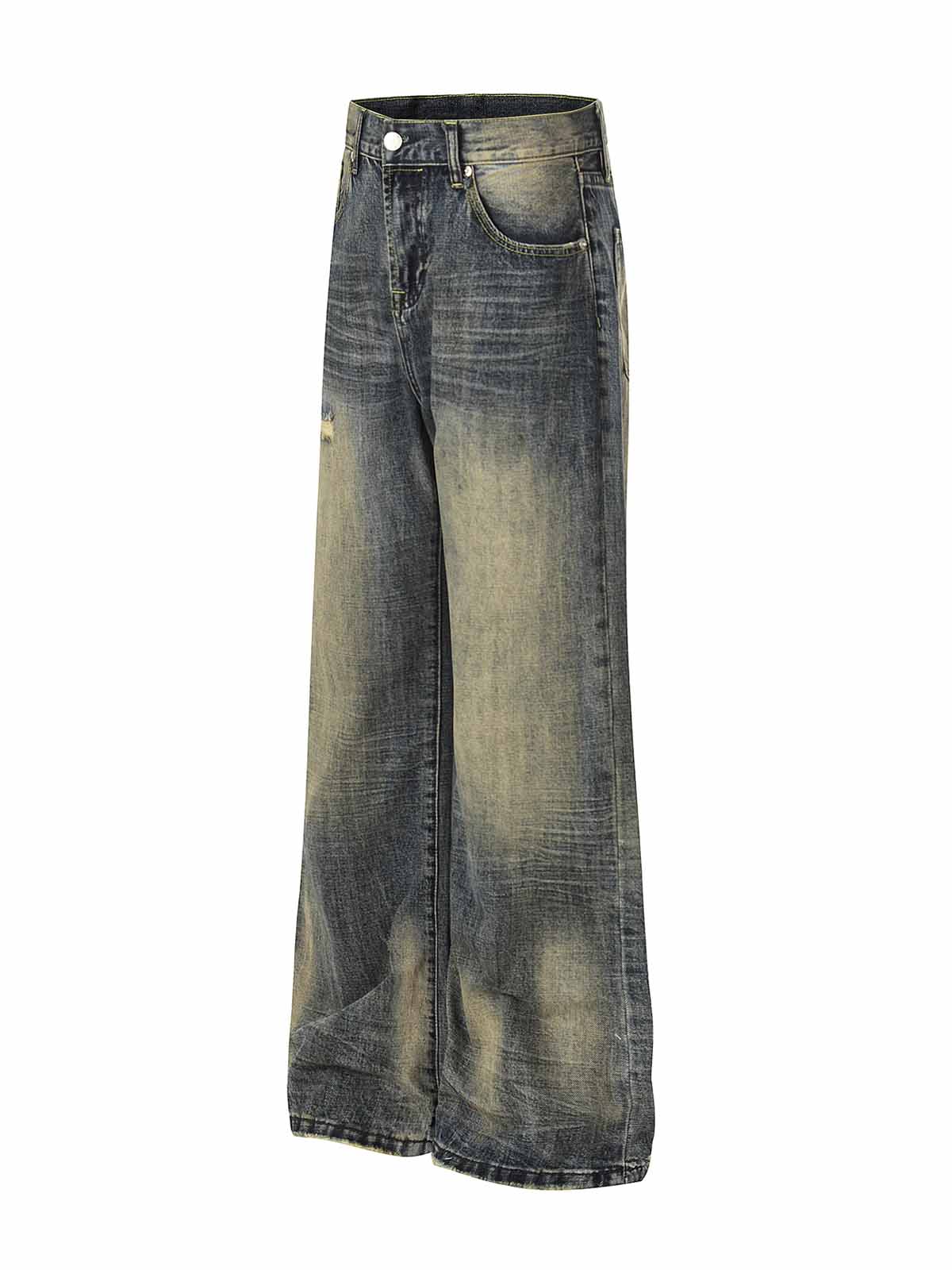 NOISSEY VINTAGE MUD WASH DISTRESSED WIDE-LEG BAGGY JEANS