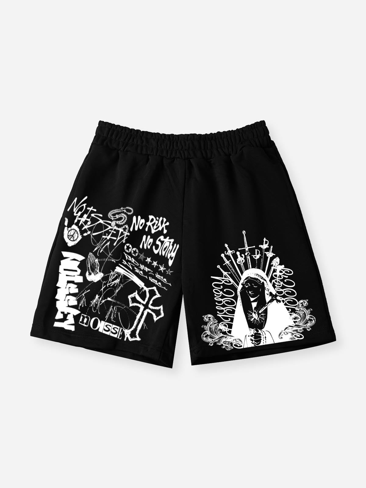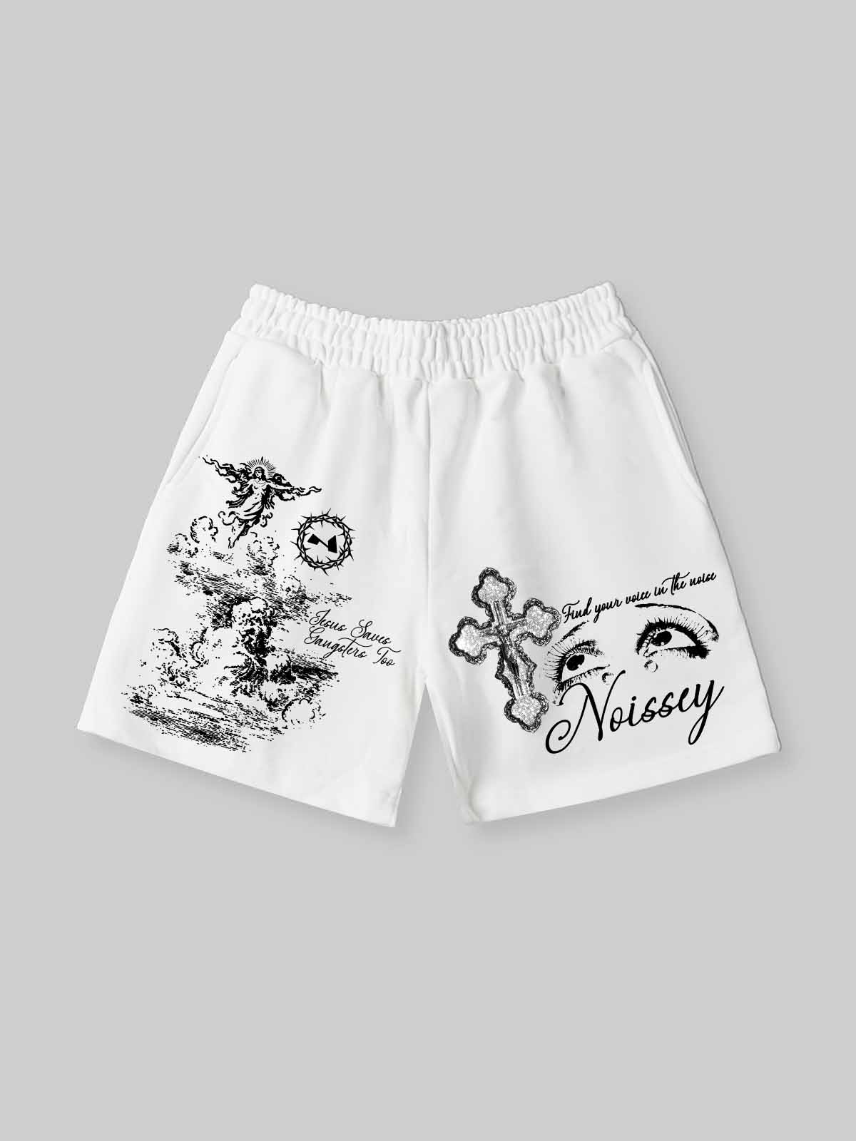 NOISSEY "SACRED REDEMPTION" RELIGIOUS ICONOGRAPHY OVERSIZED SHORTS