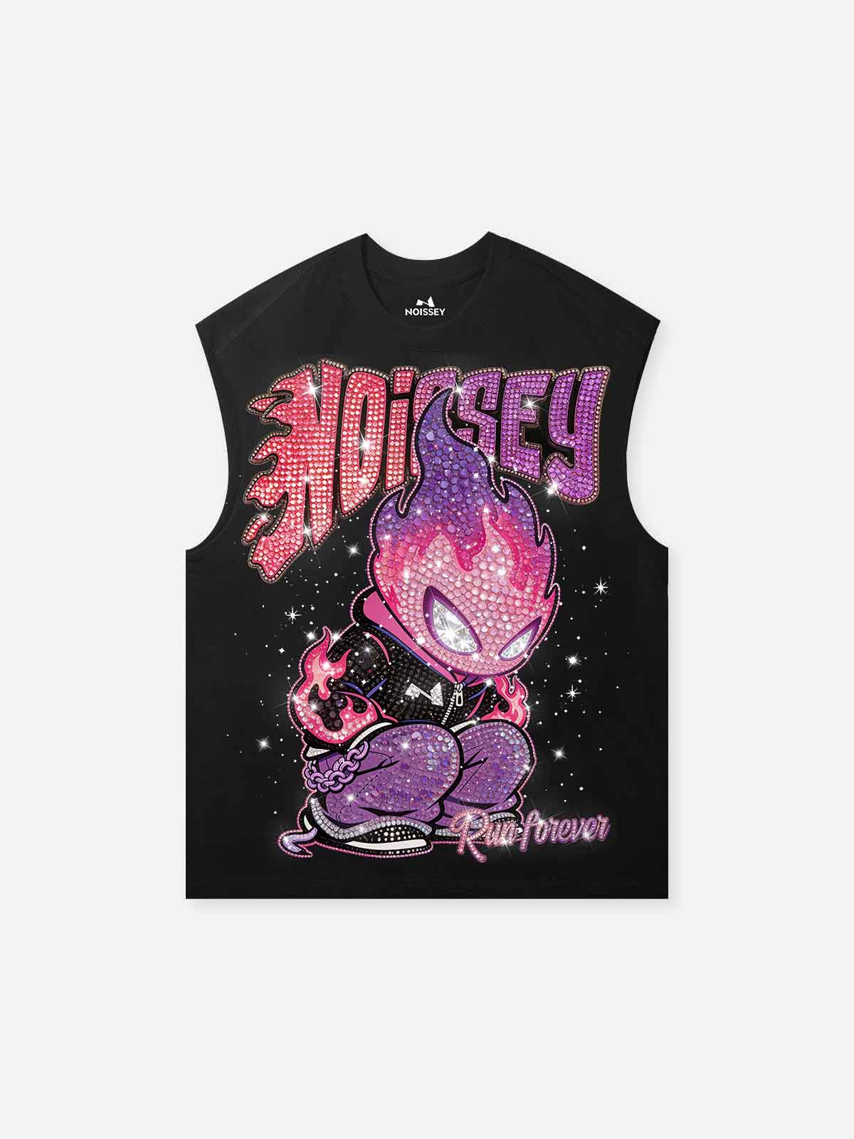 NOISSEY "RUN FOREVER" FULL-RHINESTONE FLAME CHARACTER TANK TOP