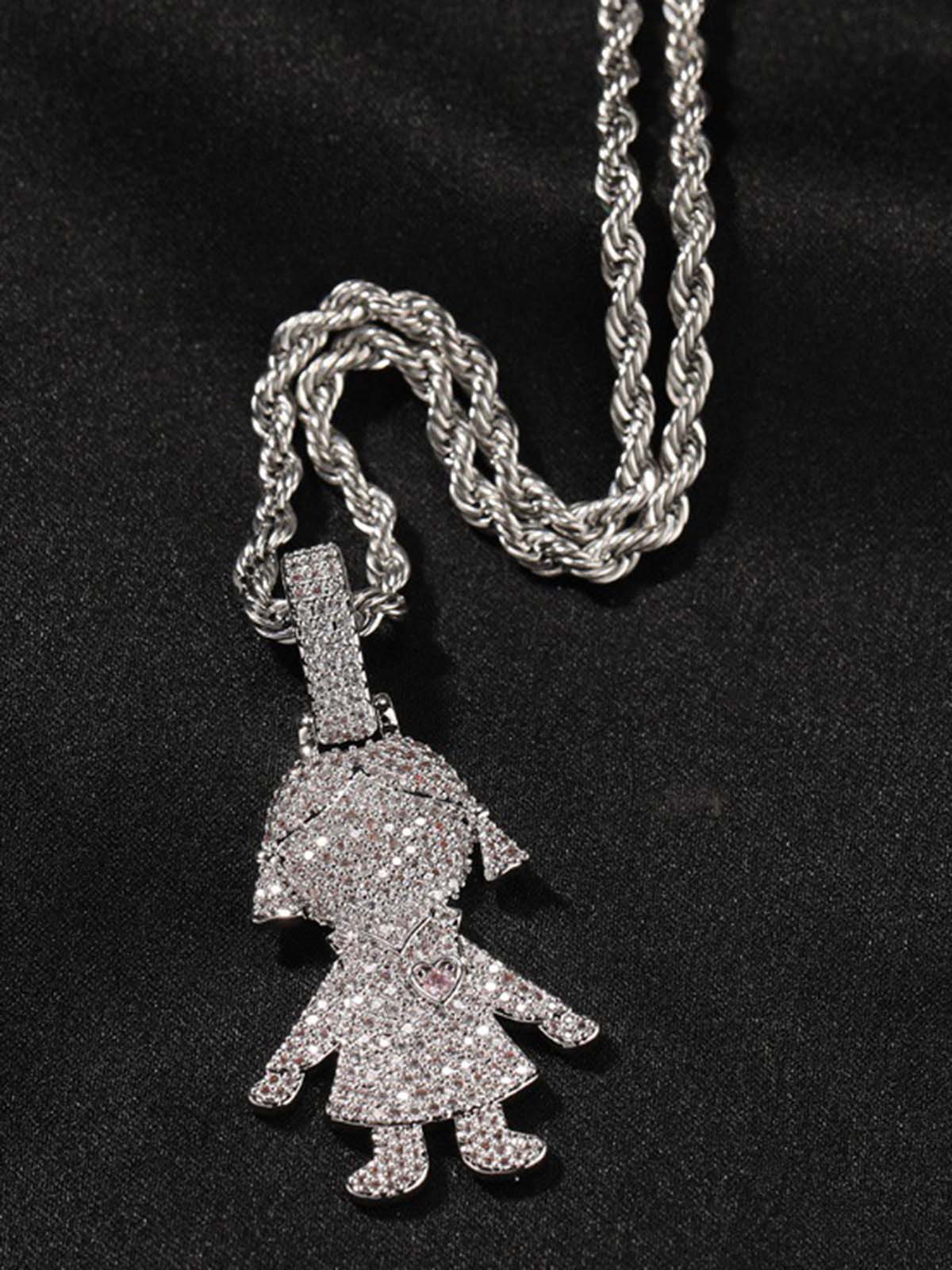 NOISSEY "Gummy Boy & Girl" Fully Iced-Out Cartoon Character Pendant & Rope Chain Necklace