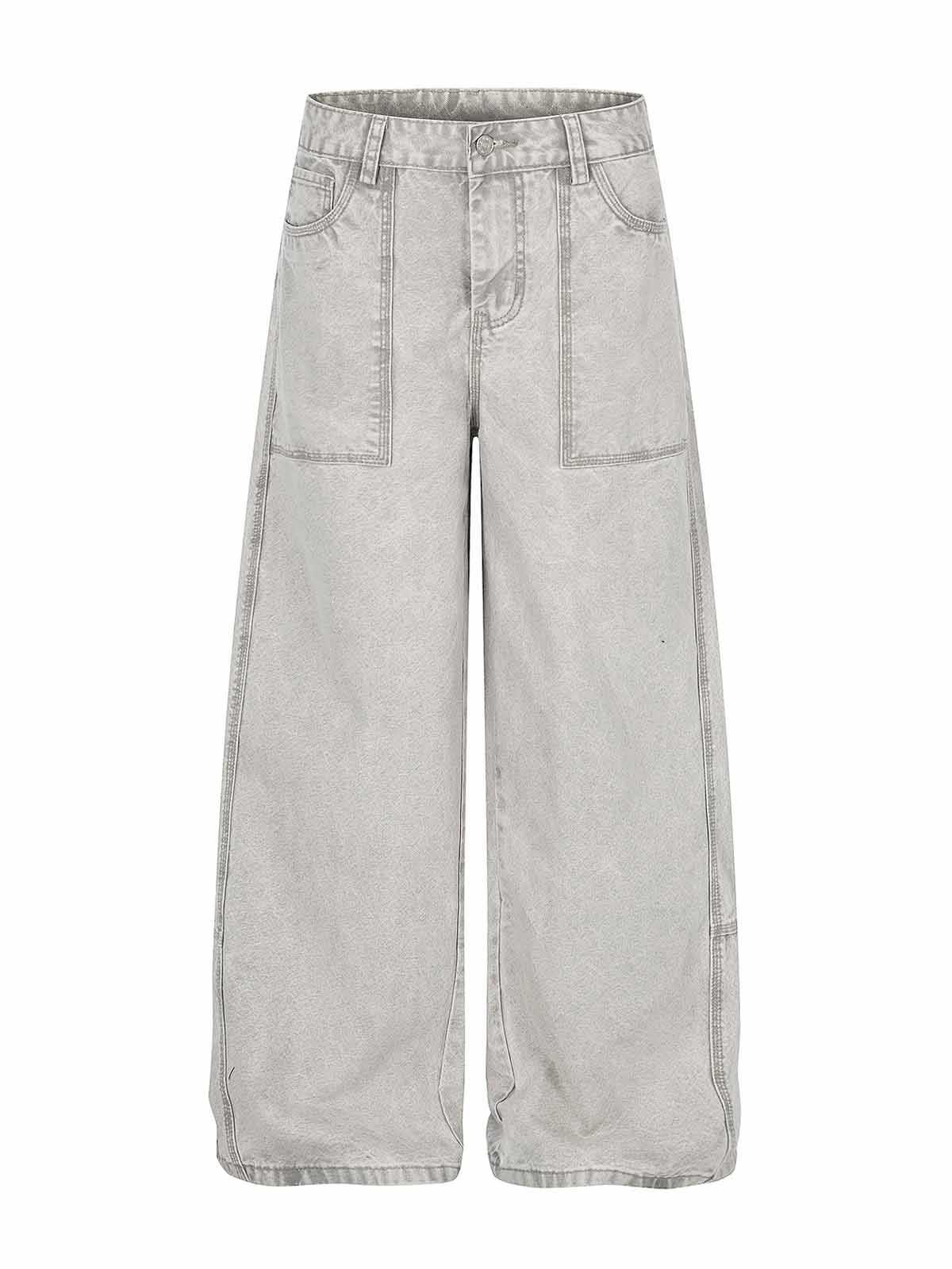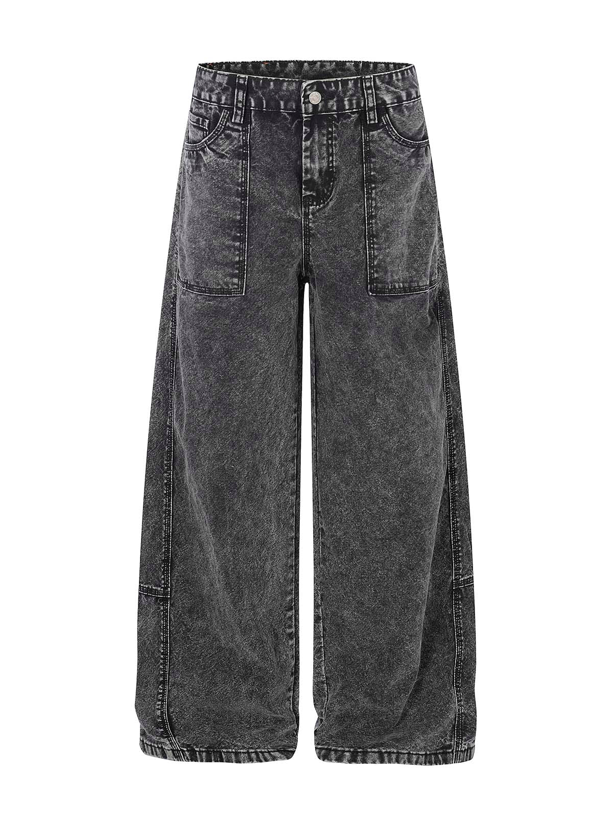 NOISSEY VINTAGE WASHED DOUBLE-POCKET WIDE-LEG BAGGY JEANS