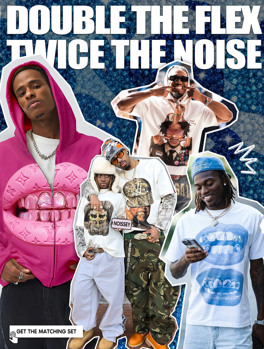NOISSEY Cross Grillz Rhinestone Sleeve Thermal Hoodie