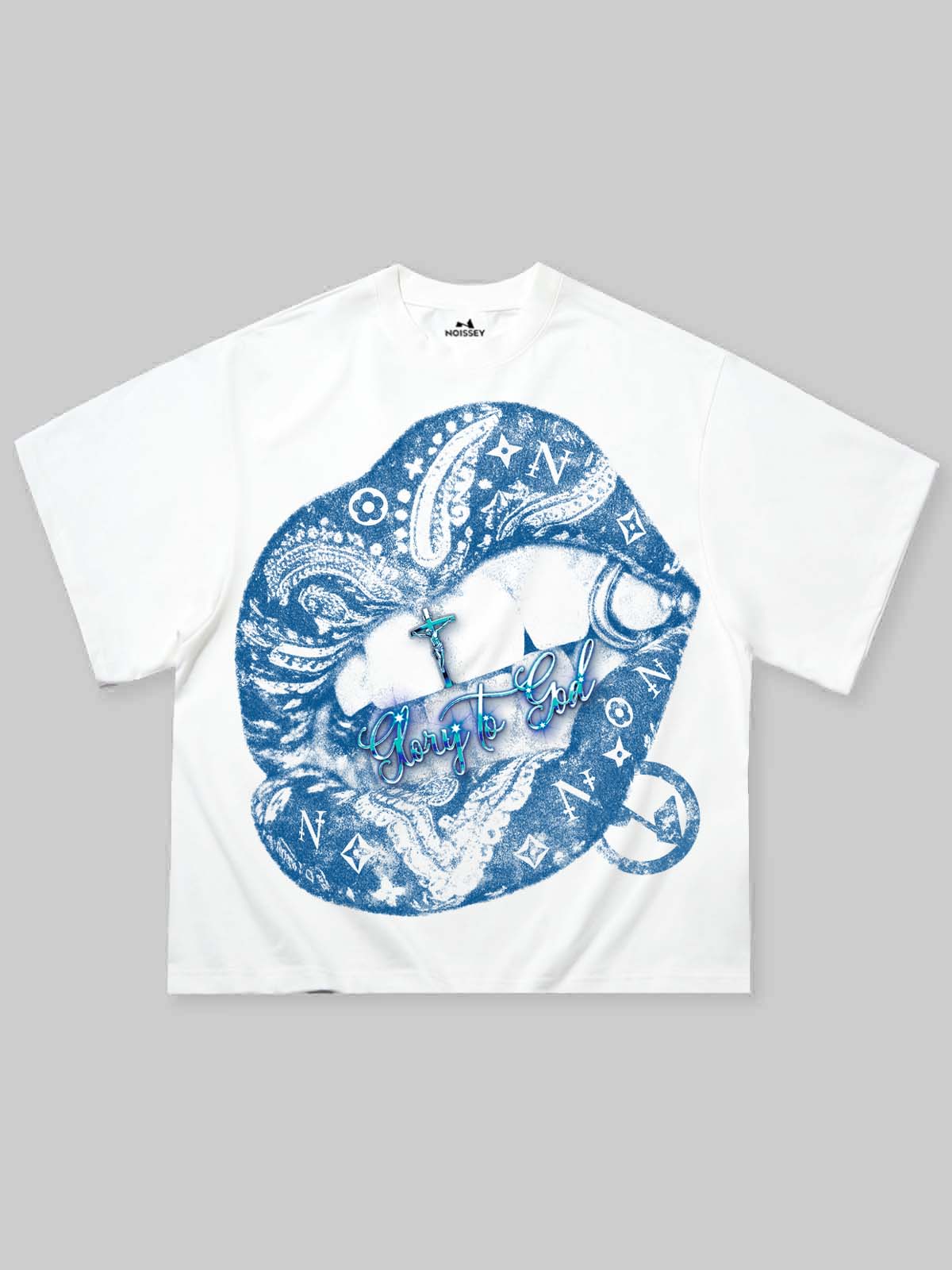 NOISSEY "GLORY TO GOD" VINTAGE PAISLEY LIPS GRAPHIC TEE