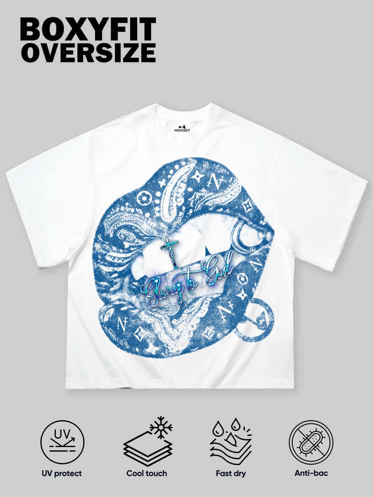 NOISSEY Blue Paisley Lip "Hustle" Cooling Boxy Tee