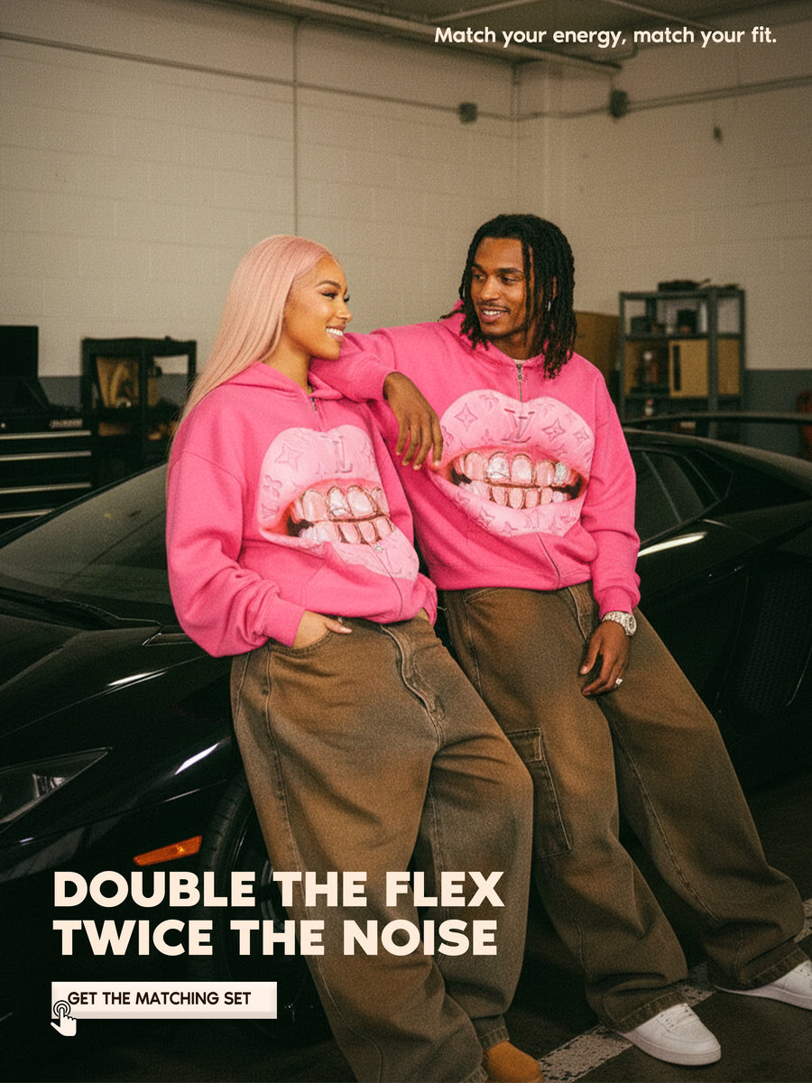 NOISSEY Pink "Leather Cat's Eye" Grillz Zip-Up Hoodie