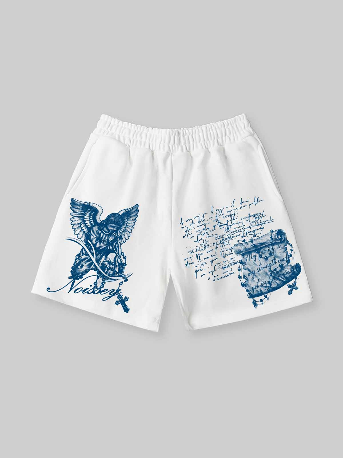 NOISSEY "PRAYING ANGEL" BLUE ARTWORK RELAXED SWEAT SHORTS