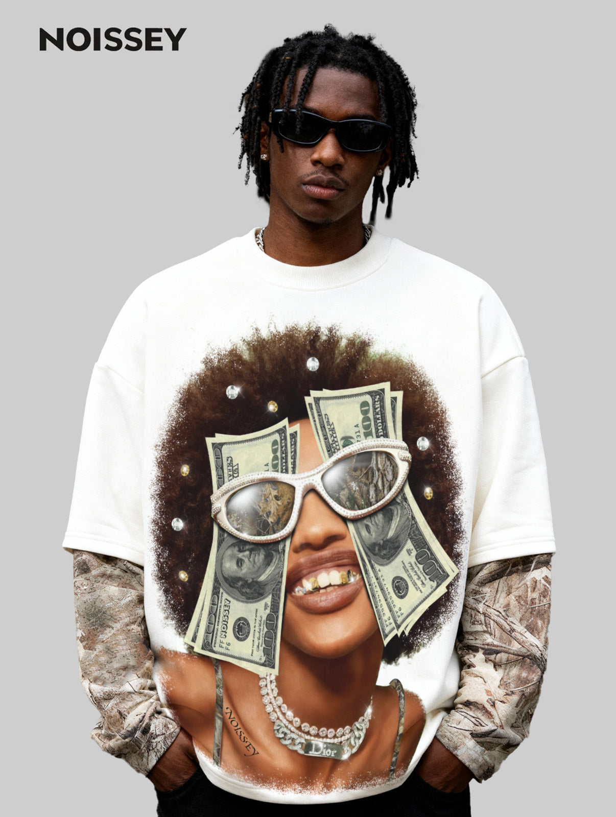 The bold declaration "All we need is money" combined with a real tree print makes this long - sleeve shirt incredibly unique and attention - grabbing. Its long - sleeve design is suitable for multiple occasions. Slip it on to showcase your attitude and effortlessly become the center of attention!
