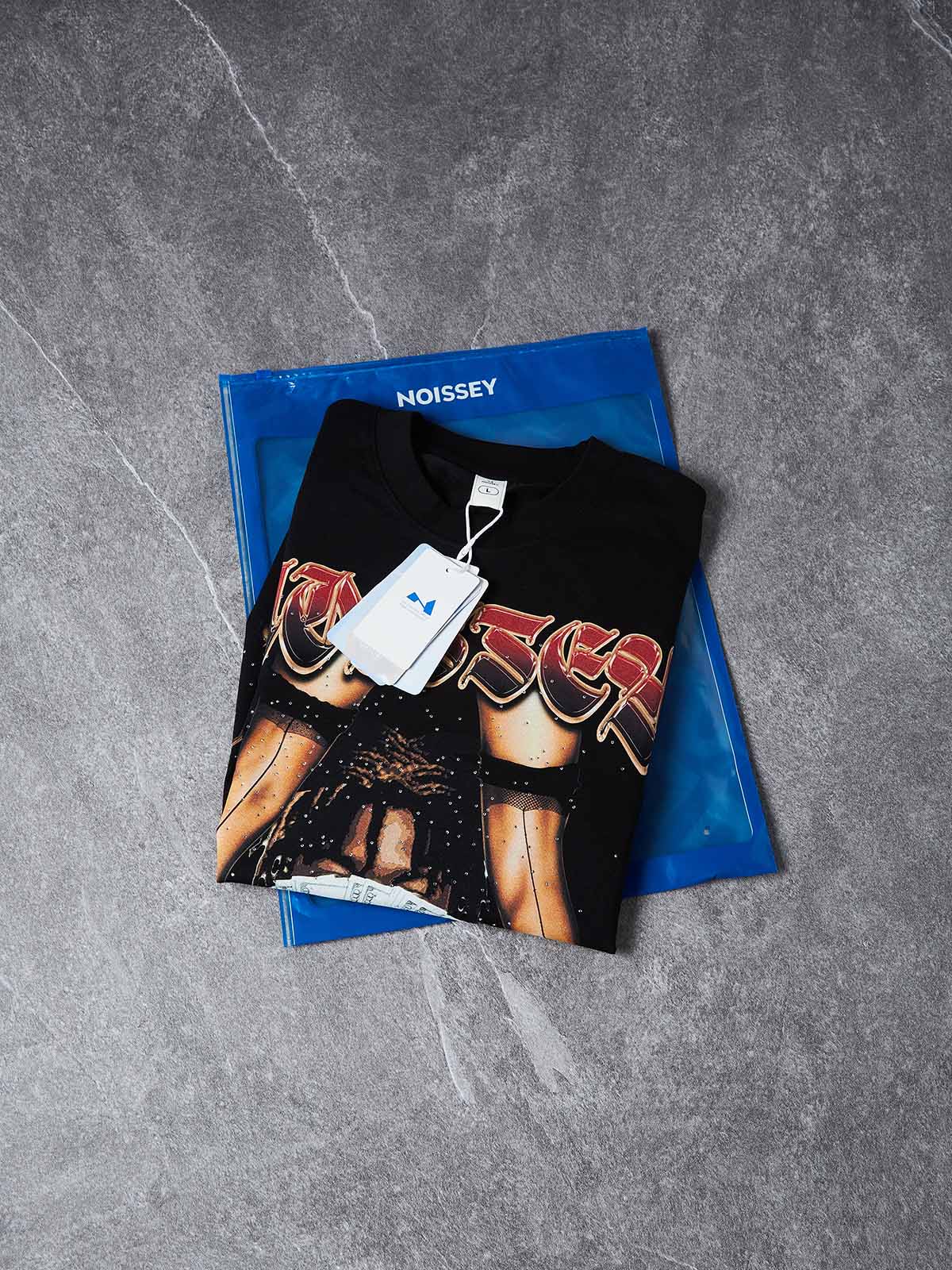 Iconic Aesthetic: Combining 90s bootleg rap tee vibes with contemporary graffiti art and gothic typography.