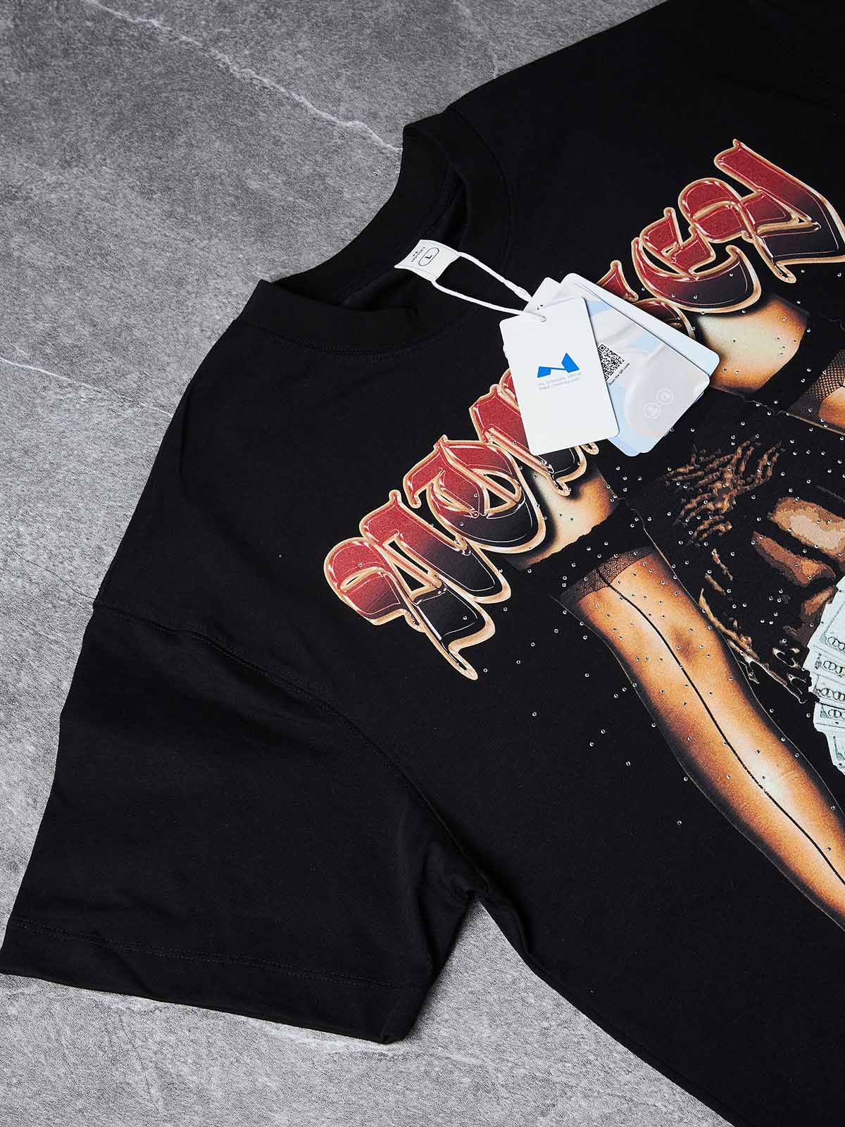 Step into the spotlight with our DIY Glitter Diamond "Hustle & Flow" Graffiti Tee. This isn't just a shirt; it's a statement of ambition and high-octane style. Featuring a bold, high-contrast graphic of the "lifestyle," this tee captures the essence of modern hip-hop culture with a shimmering Y2K twist.