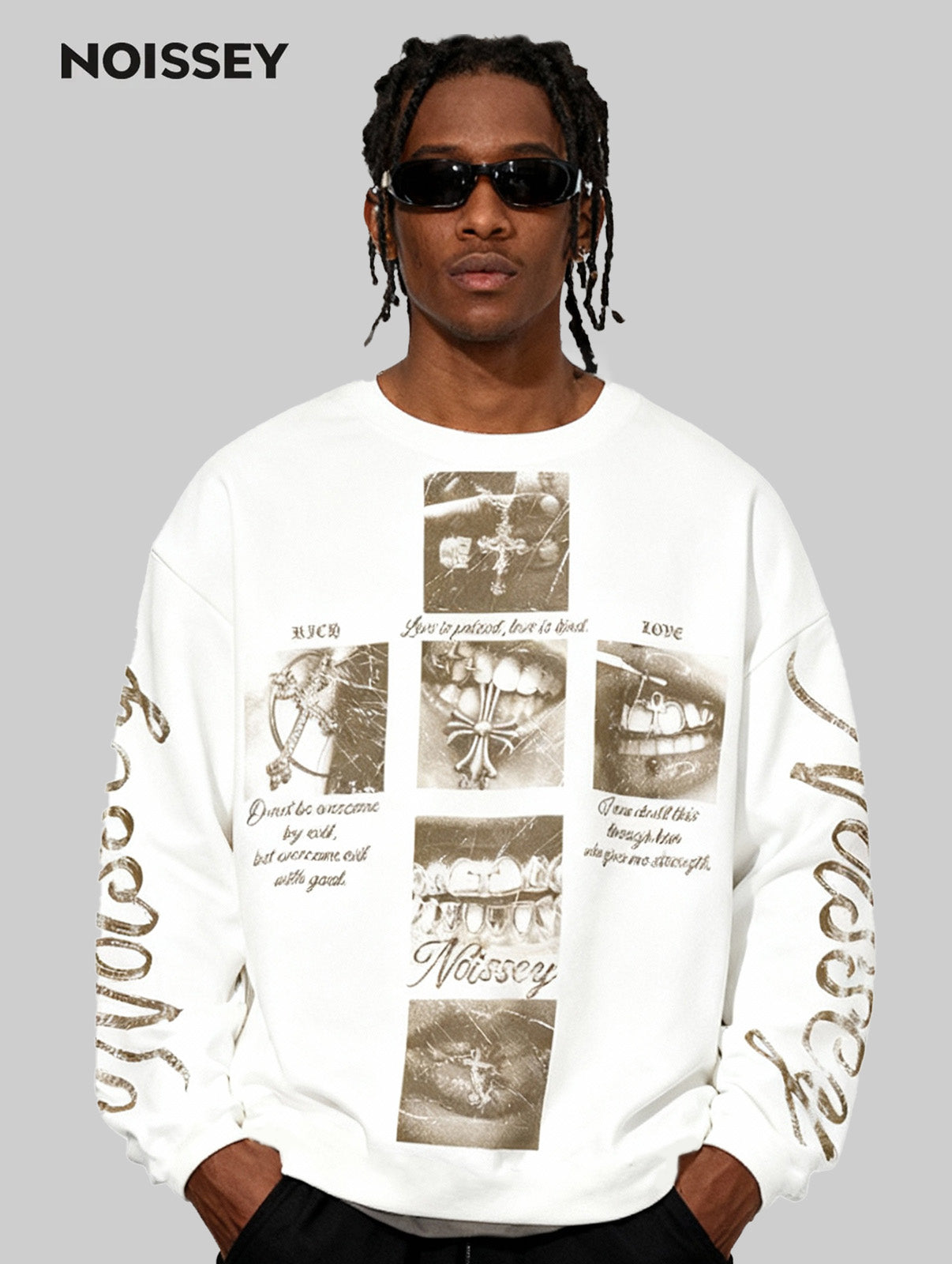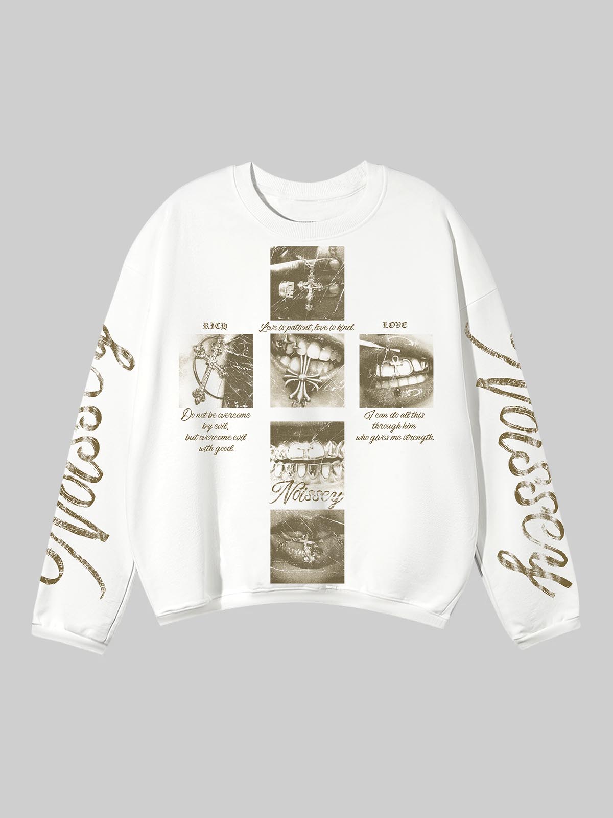 Retro cross print, full of trendy vibe! Air-layer fabric is light, breathable, and warm. Long sleeves suit various occasions. Stand out wherever you go!