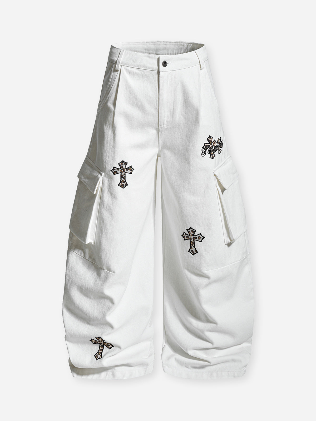 Unleash your inner hip-hop spirit with our Hip-hop Style Leopard Print Cross Utility Pants and T-shirt set! The bold leopard print and cross design exude confidence, while the cargo style adds a street-smart edge. Step up your fashion game now!
