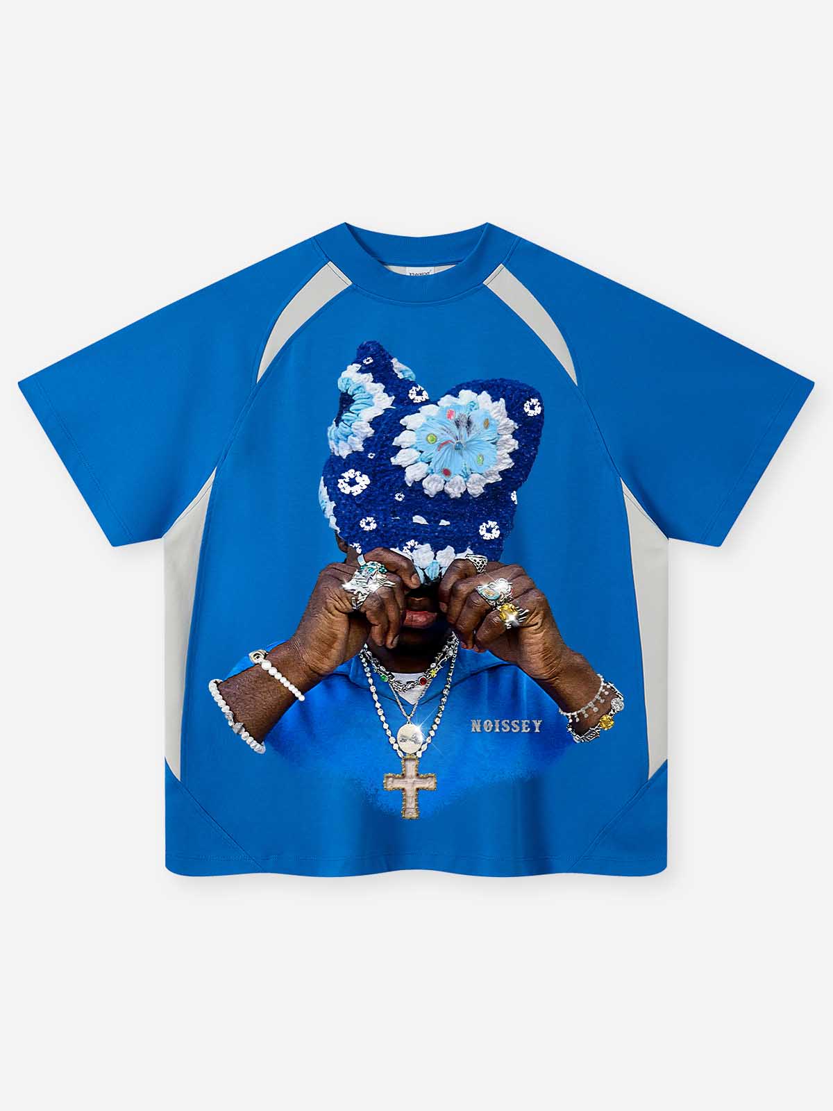 This T-shirt, dominated by sapphire blue, features a delicate knit hat print, combining simplicity with fashion. Made of high-quality fabric, it's skin-friendly, soft, and breathable. Whether for daily leisure or outings, wearing it allows you to effortlessly showcase unique taste and stand out!