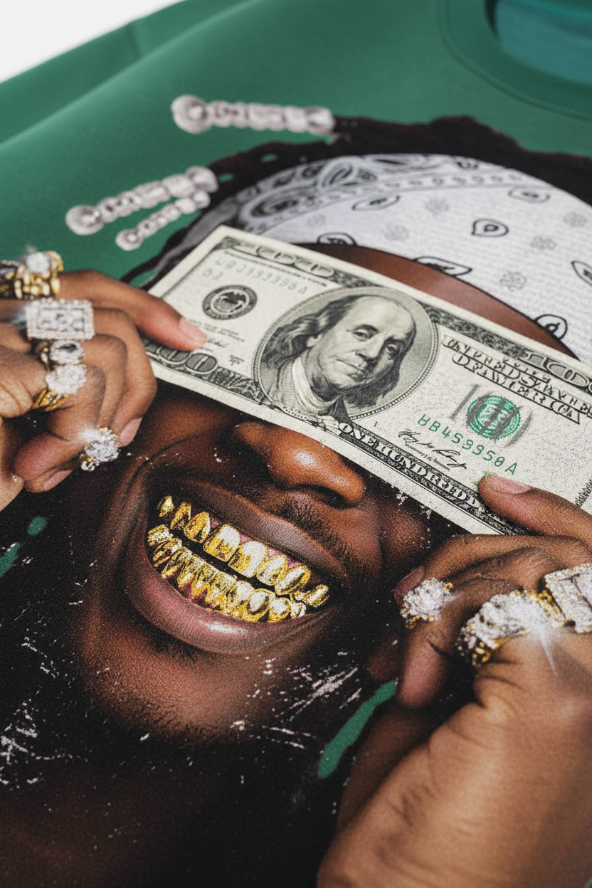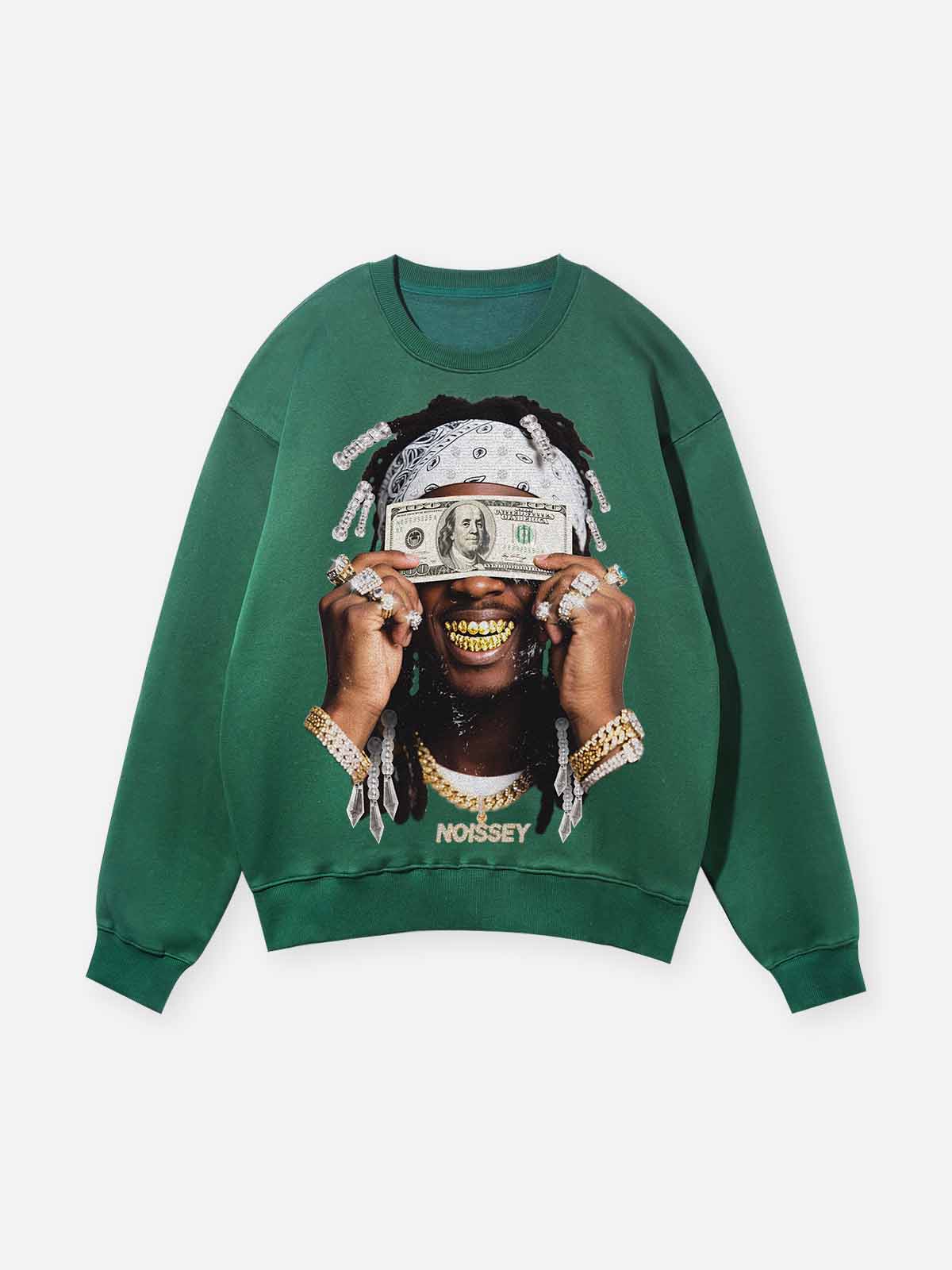"Money Blinds the Eyes" Green Print Sweatshirt