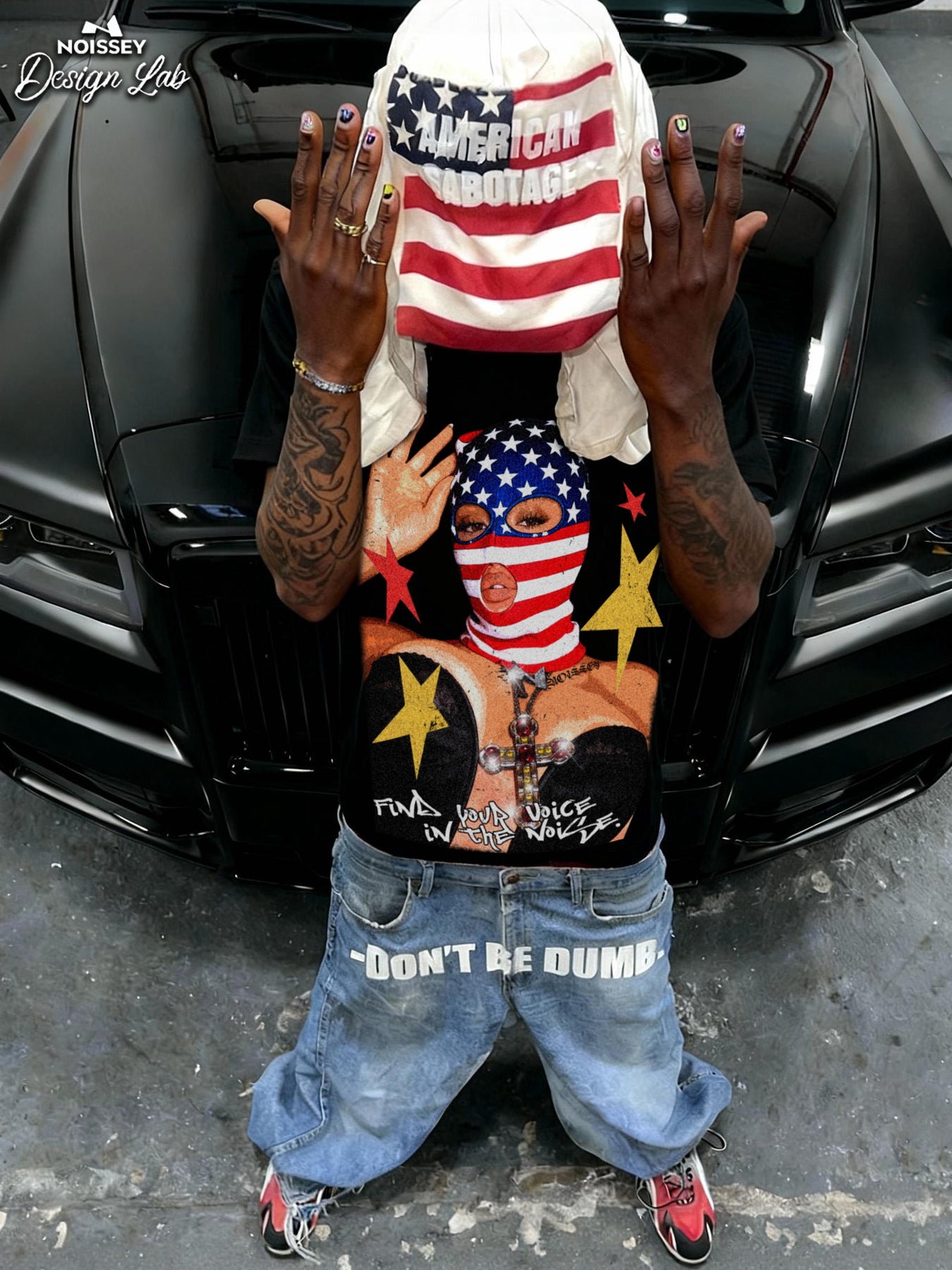 American Flag Balaclava Lady Art Painting Print Boxy Oversized T-shirt
