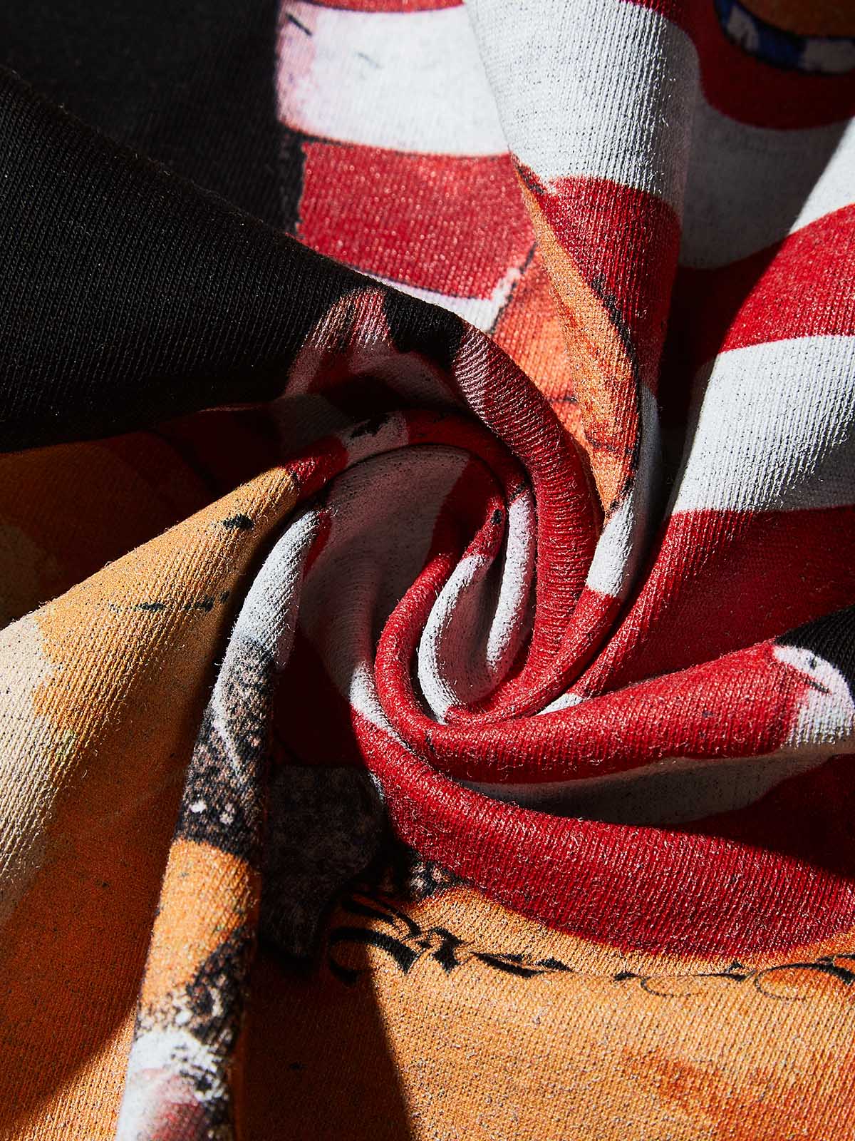 This T-shirt has a boxy fit with a short, wide shape and long sleeves, offering a loose style. The art painting print of an American flag and a lady is eye-catching. Wear it to create a trendy street look easily. Grab it now!