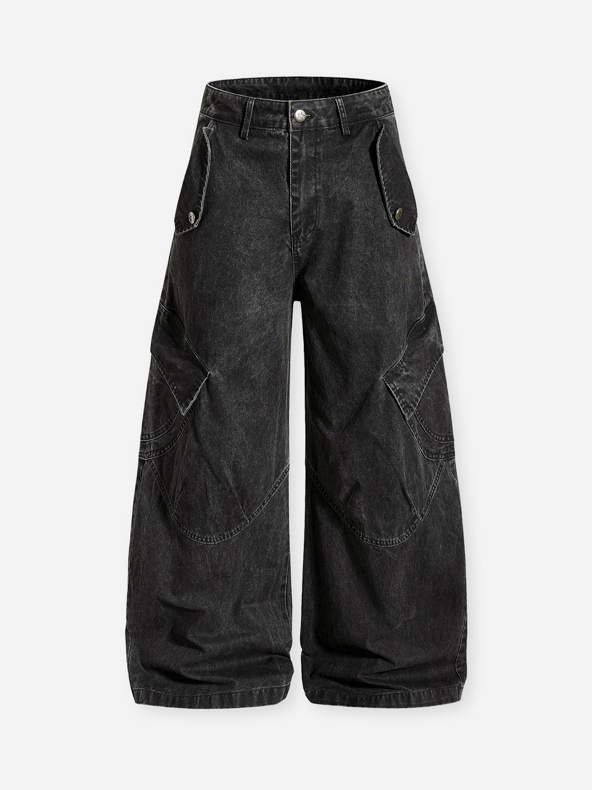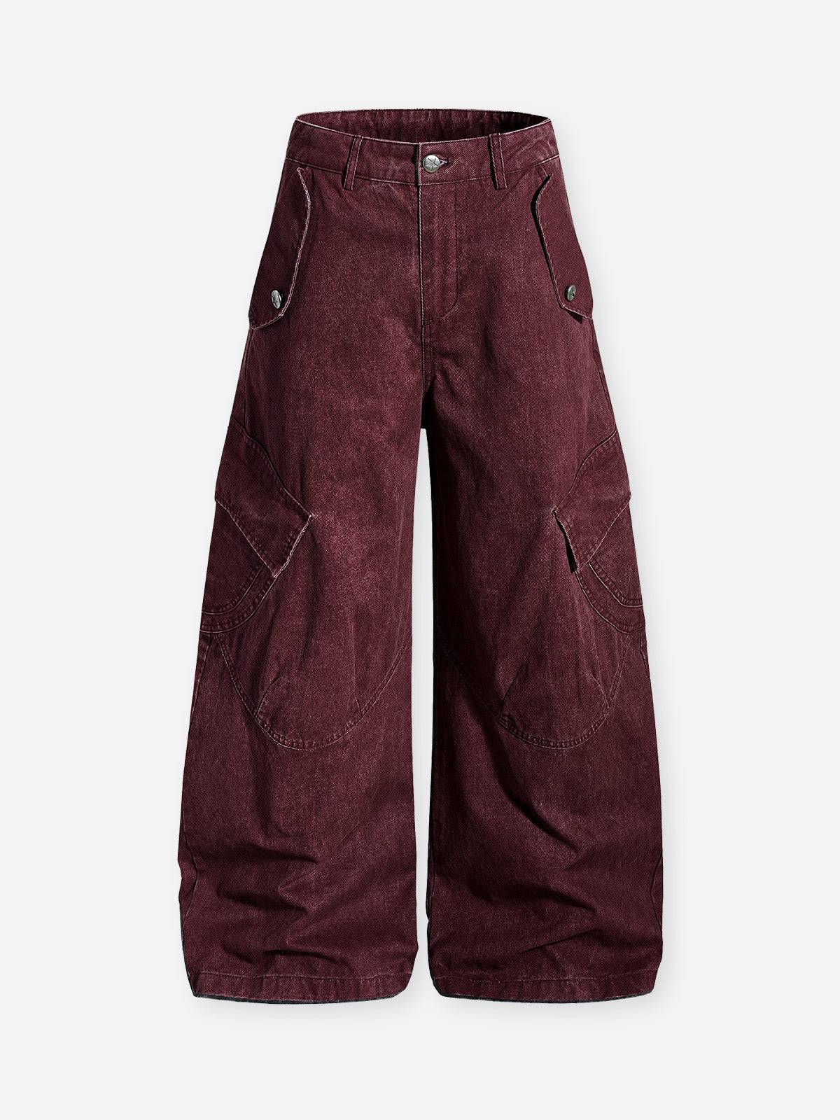 These washed distressed curved-leg cargo pants are a must-have for fashion enthusiasts. The washed and distressed treatment gives them a unique, retro vibe. The curved-leg design is stylish and flattering. Made of durable material, they're built to last. Get yours now!