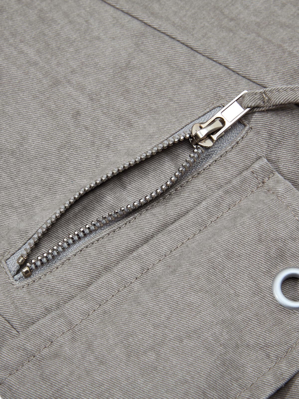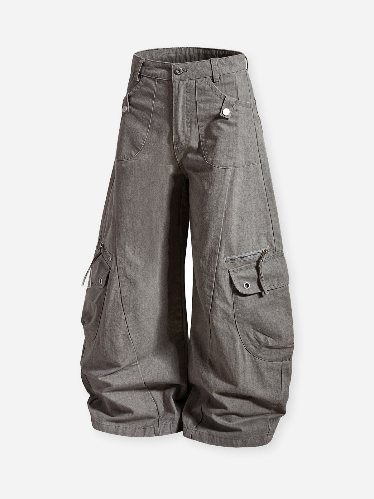 Vintage Distressed Multi-Pocket Wide-Leg Curved Pants