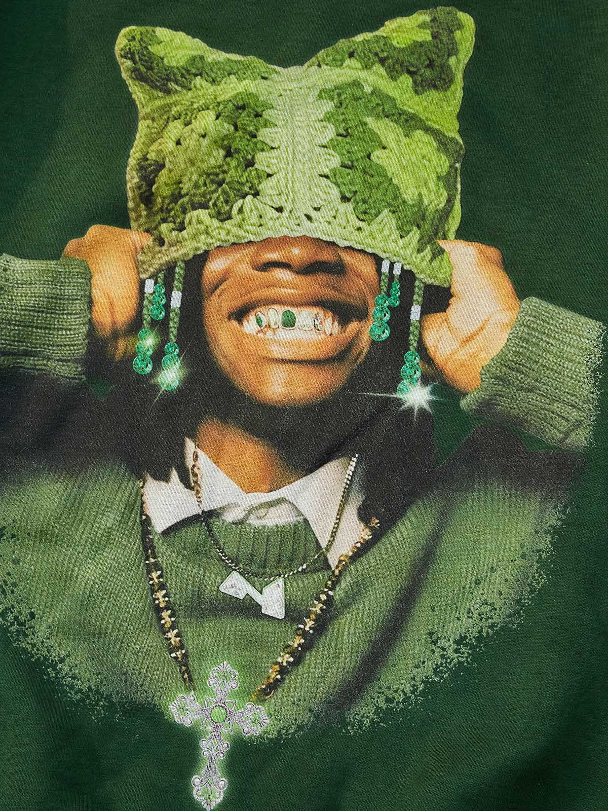 Avocado Green Cat Ear Crochet Hat Print Sweatshirt