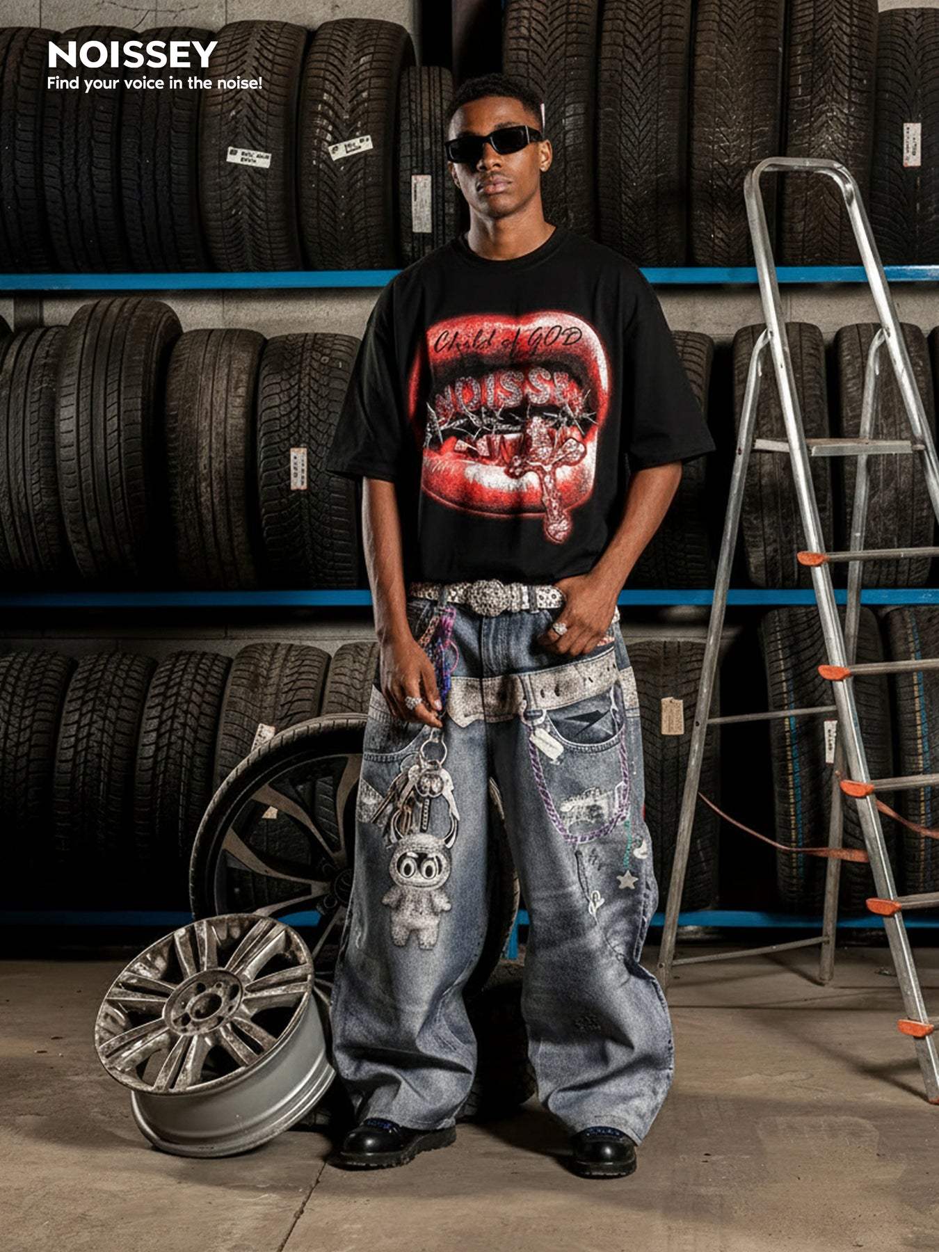 The Hook: Faith in the wild. Redemption in the grit. This high-impact piece features the "Child of GOD" manifesto paired with a striking red-lipped "NOISSEY" Grills graphic. Entwined with thorns and a gothic cross, it creates a powerful visual metaphor of purity meeting the raw edge of the streets.