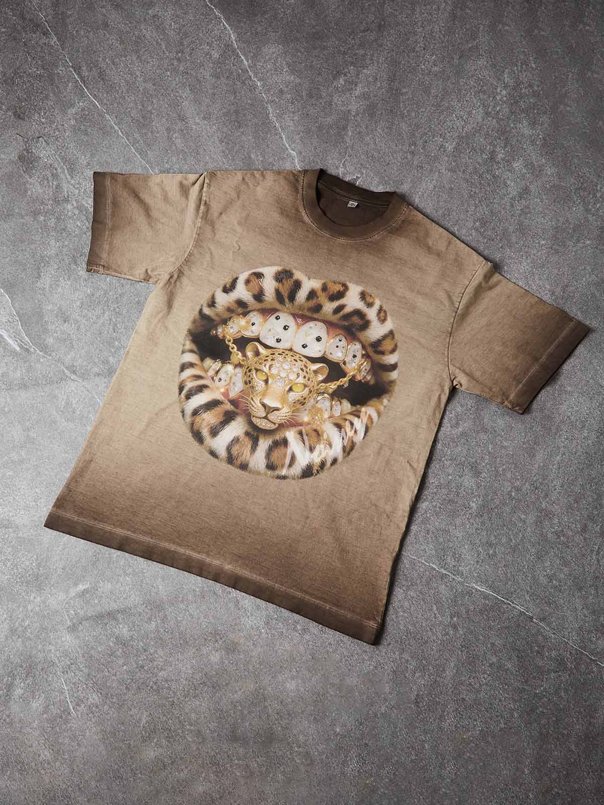 NOISSEY "GOLDEN LEOPARD" ART PRINT - ICED OUT GRILLS OVERSIZED TEE
