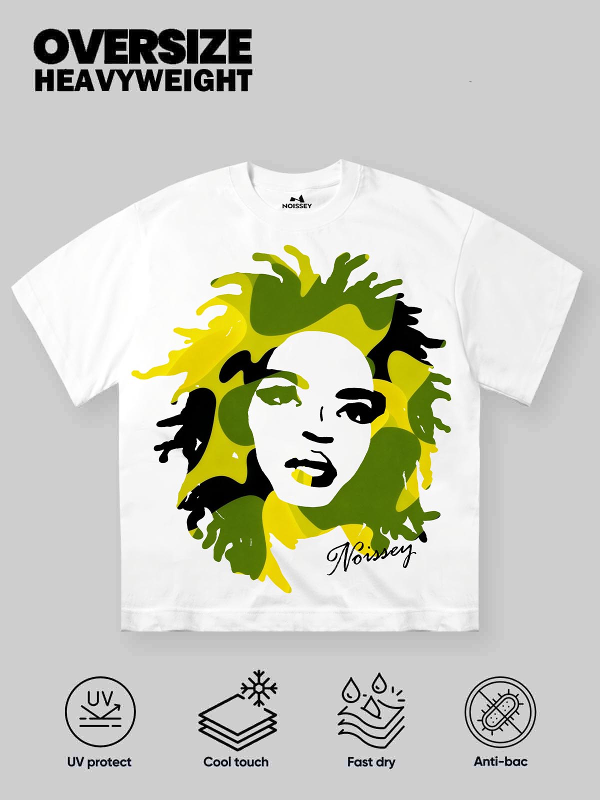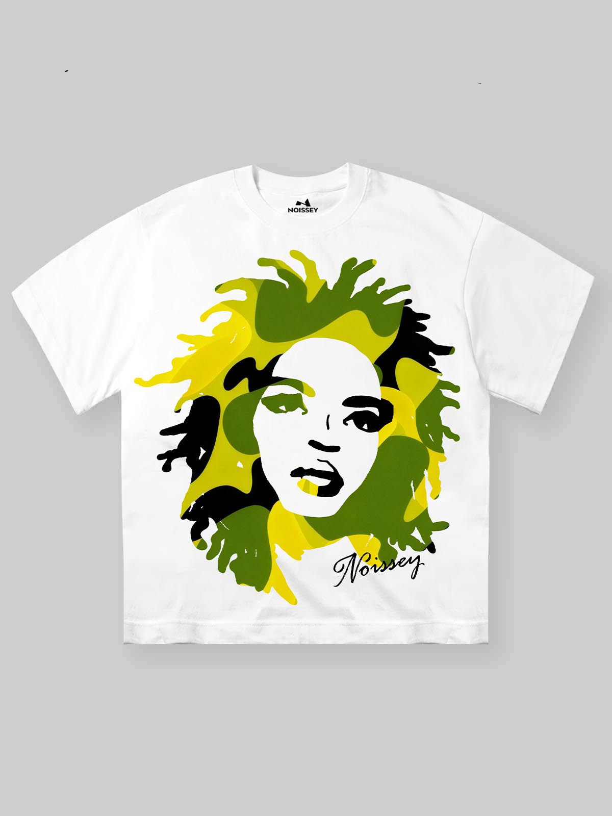 This T-shirt cleverly combines celebrity elements with green camouflage art prints, unique and eye-catching. Wearing it instantly gives you a trendy vibe and shows off your extraordinary personality. The soft fabric ensures comfort, making you the focus. Don't hesitate, grab it!