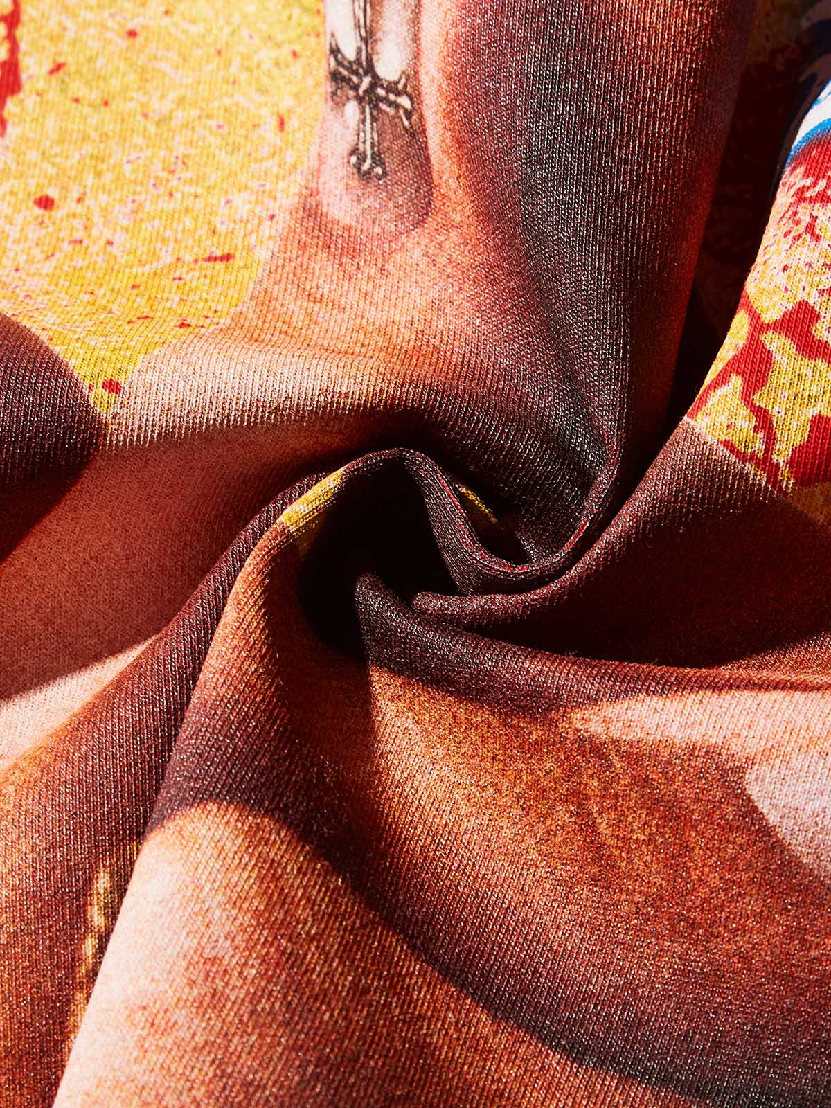 The boxy fit is stylish, short yet wide, with long, casual sleeves. The bold slogan makes a statement. Wear it to stay comfy, chic, and eye-catching!