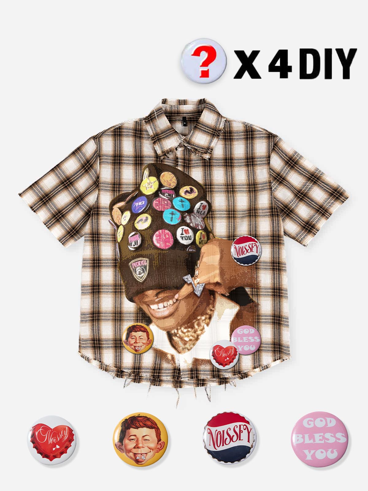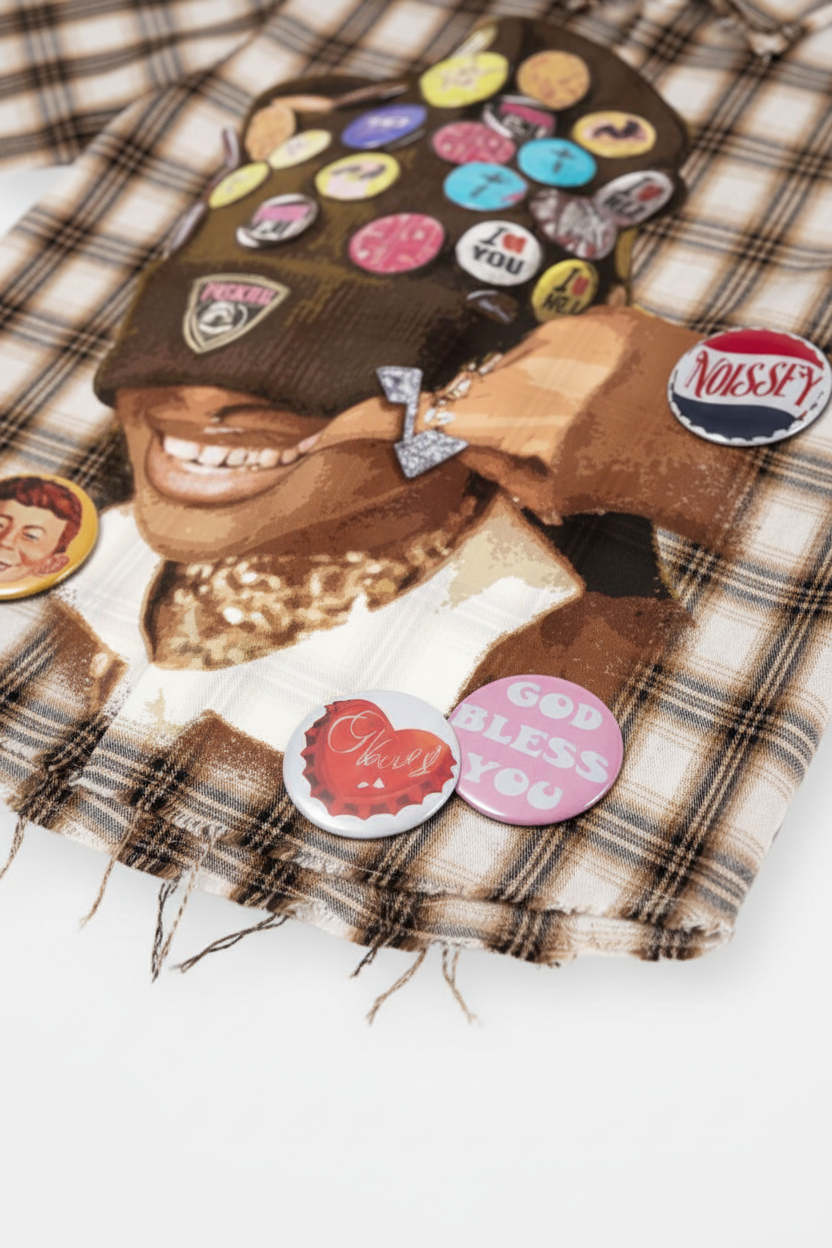 NOISSEY "BADGE GIRL" ART PRINT - PLAID FLANNEL OVERSIZED SHIRT
