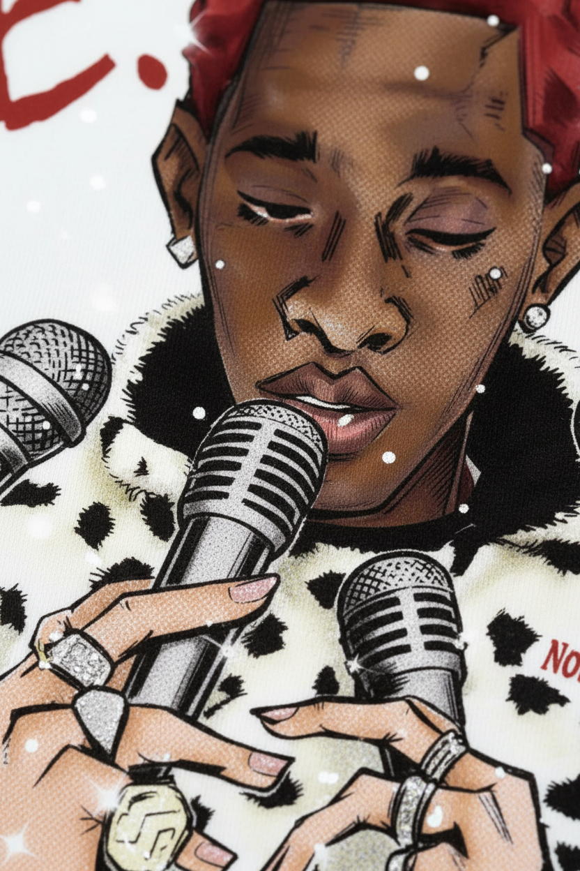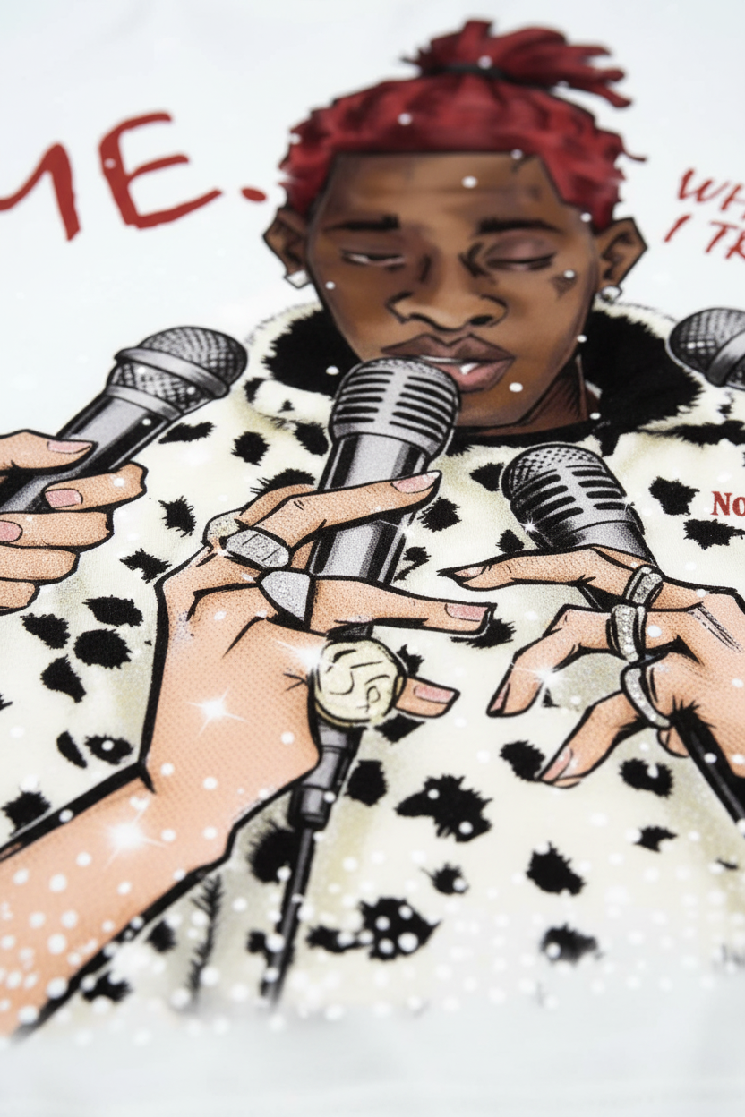 Size Recommendation: Take your standard size for the intended oversized look. The high-quality composite fabric ensures the print remains vivid and the silhouette stays crisp through every wear.