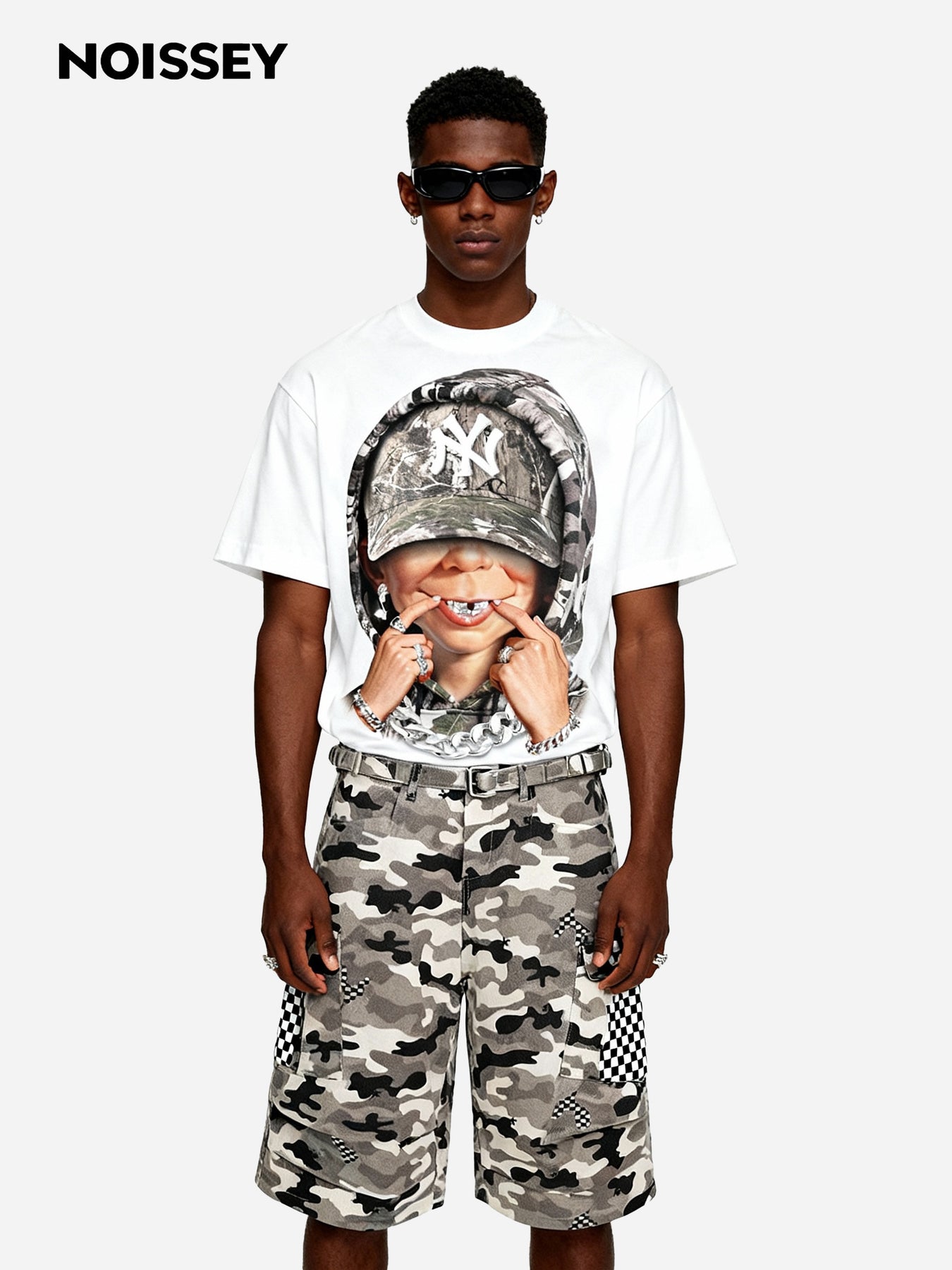 Bad boy with tree-pattern camouflage hood print T-shirt