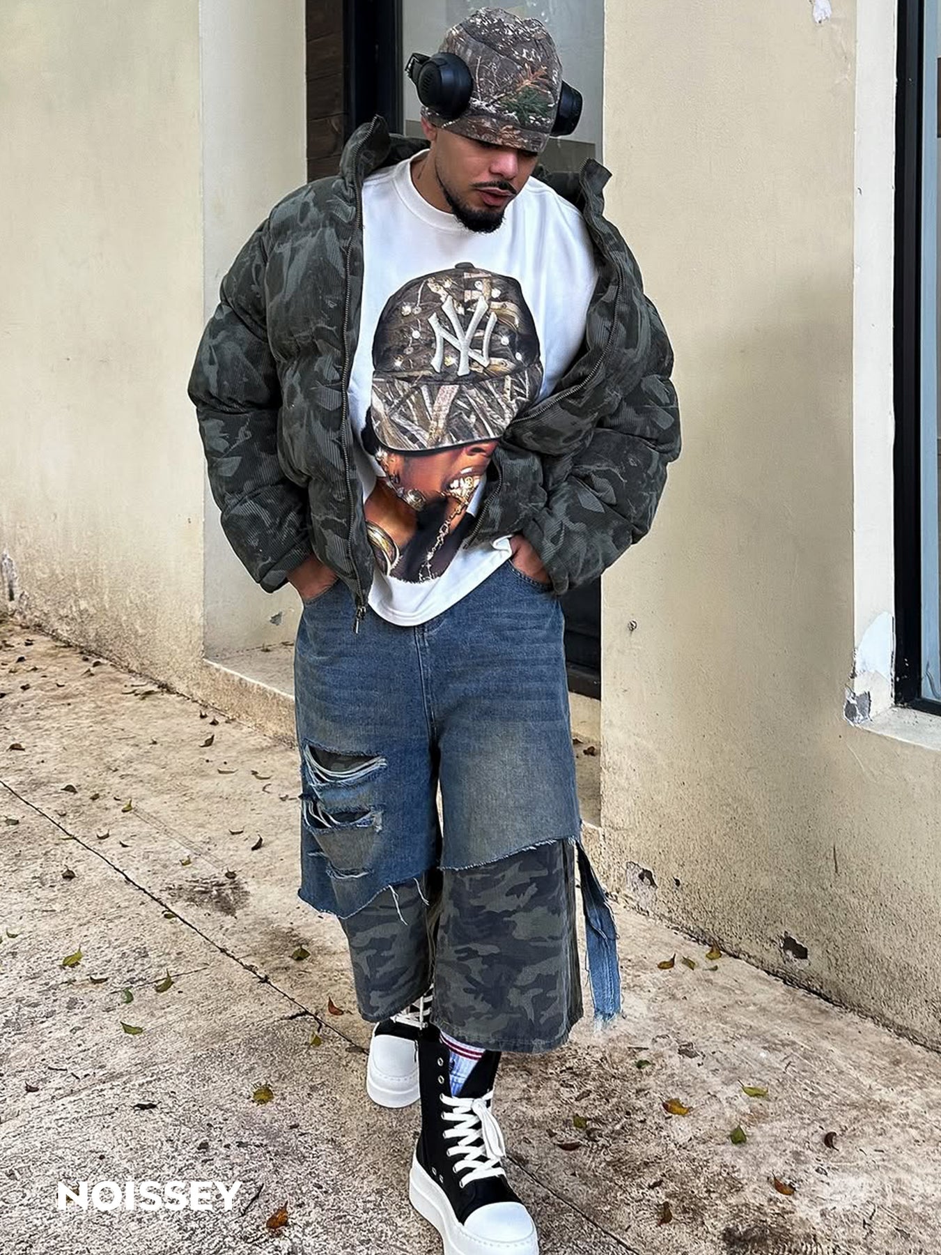 Diamond Real Tree Pattern Character Print Fake Two-Piece Long-Sleeve
