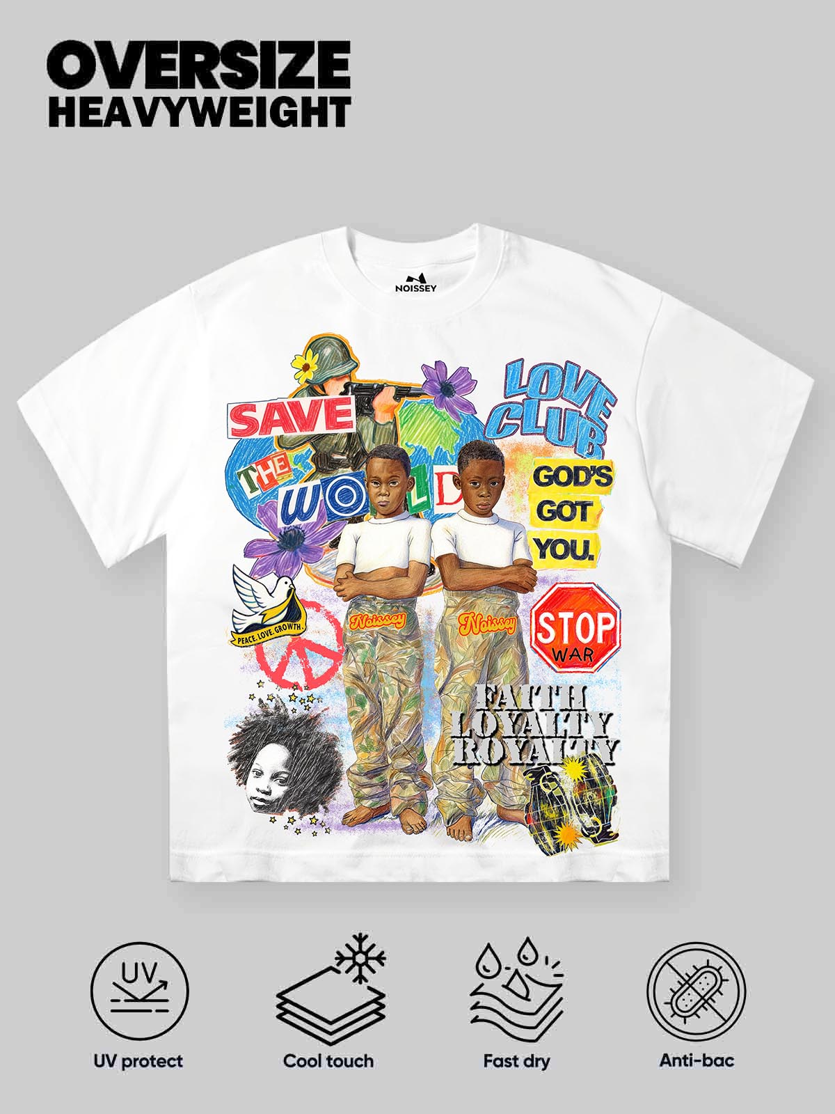 NOISSEY "Save The World" Peace Collage T-Shirt - Stop War & Faith Loyalty Graffiti Graphic Tee