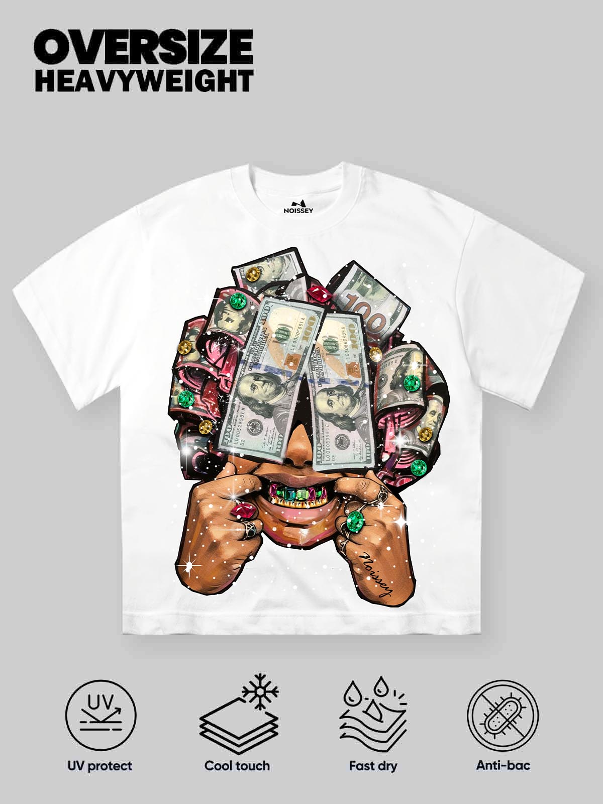 Glitter Graffiti Money-Head Woman Art Print Streetwear Oversized Graphic T-Shirt