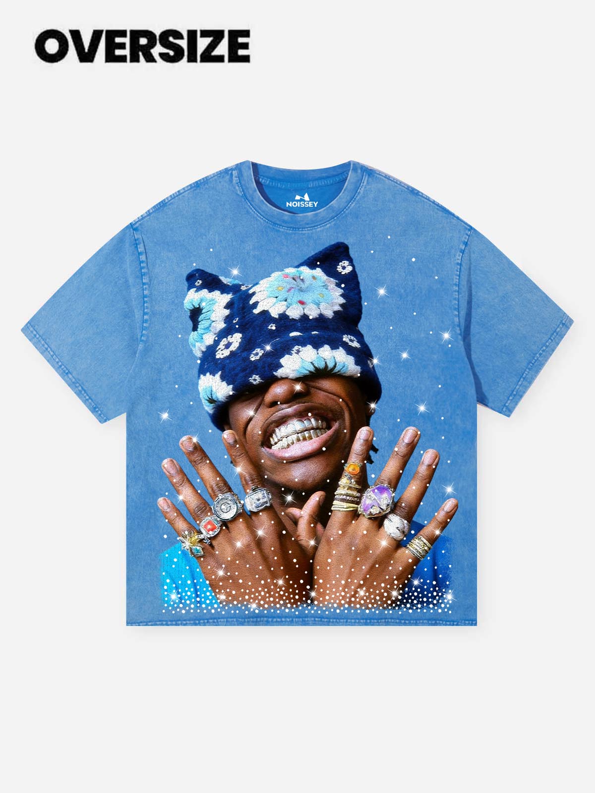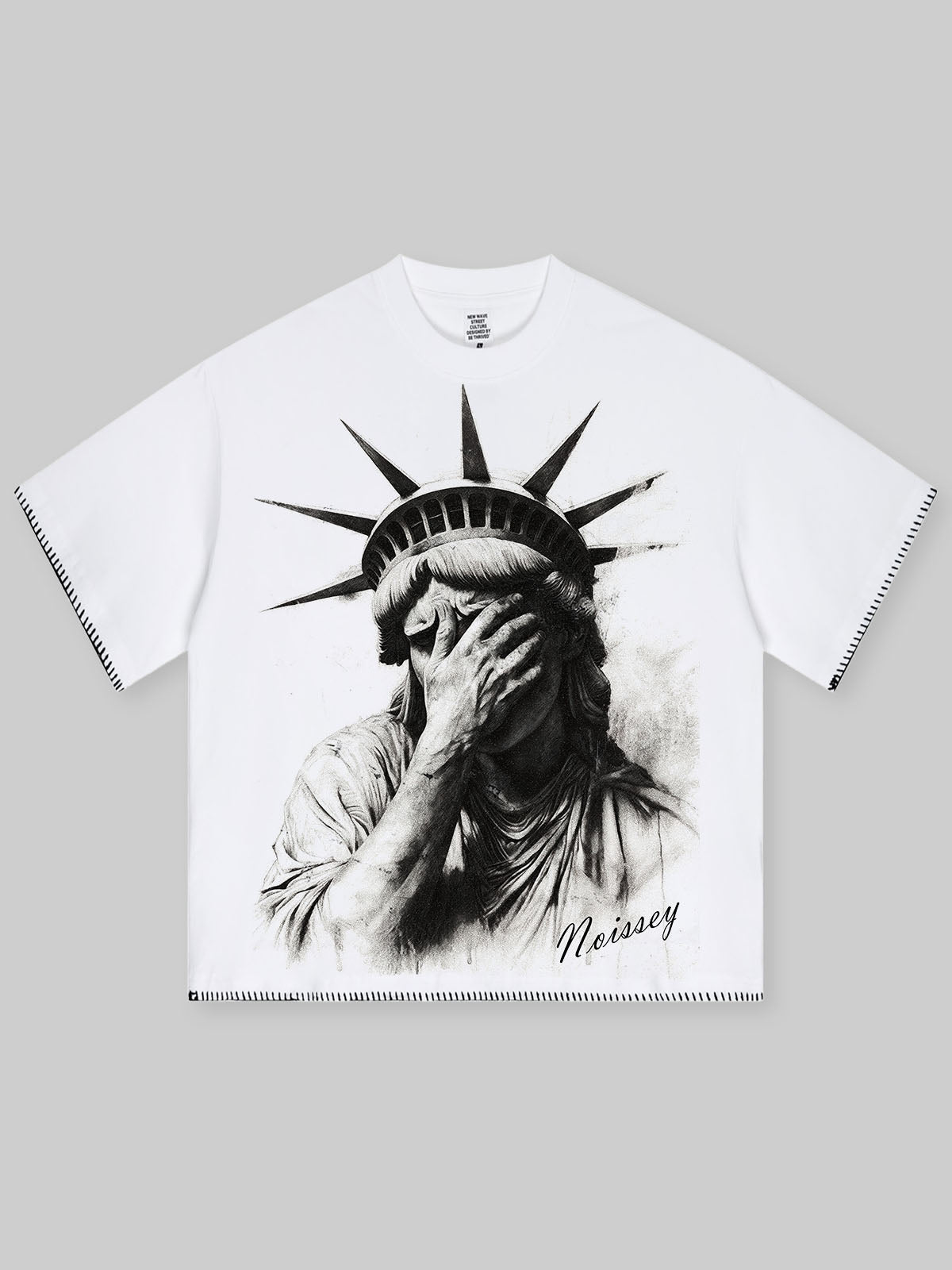 Rhinestone Statue of Liberty Bad Boy Graphic Boxy Oversized Streetwear T-Shirt