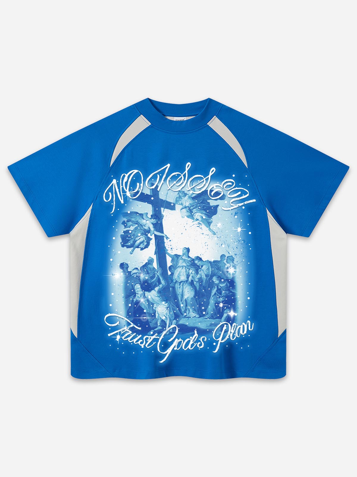 NOISSEY "Heavenly Chaos" Graphic Tee - Blue Angel Print Oversized Streetwear T-Shirt