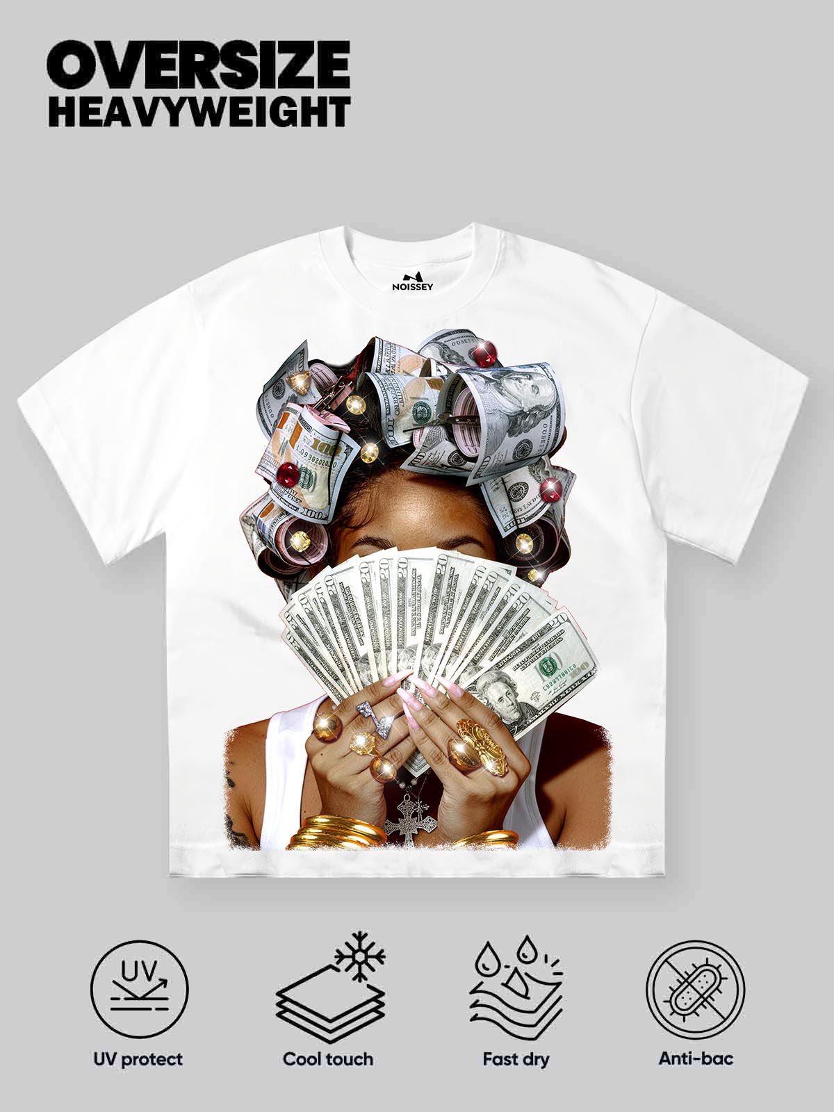 NOISSEY "Money Mindset" Graphic T-Shirt - Urban Luxury Money-Roll Hair Art Print Tee