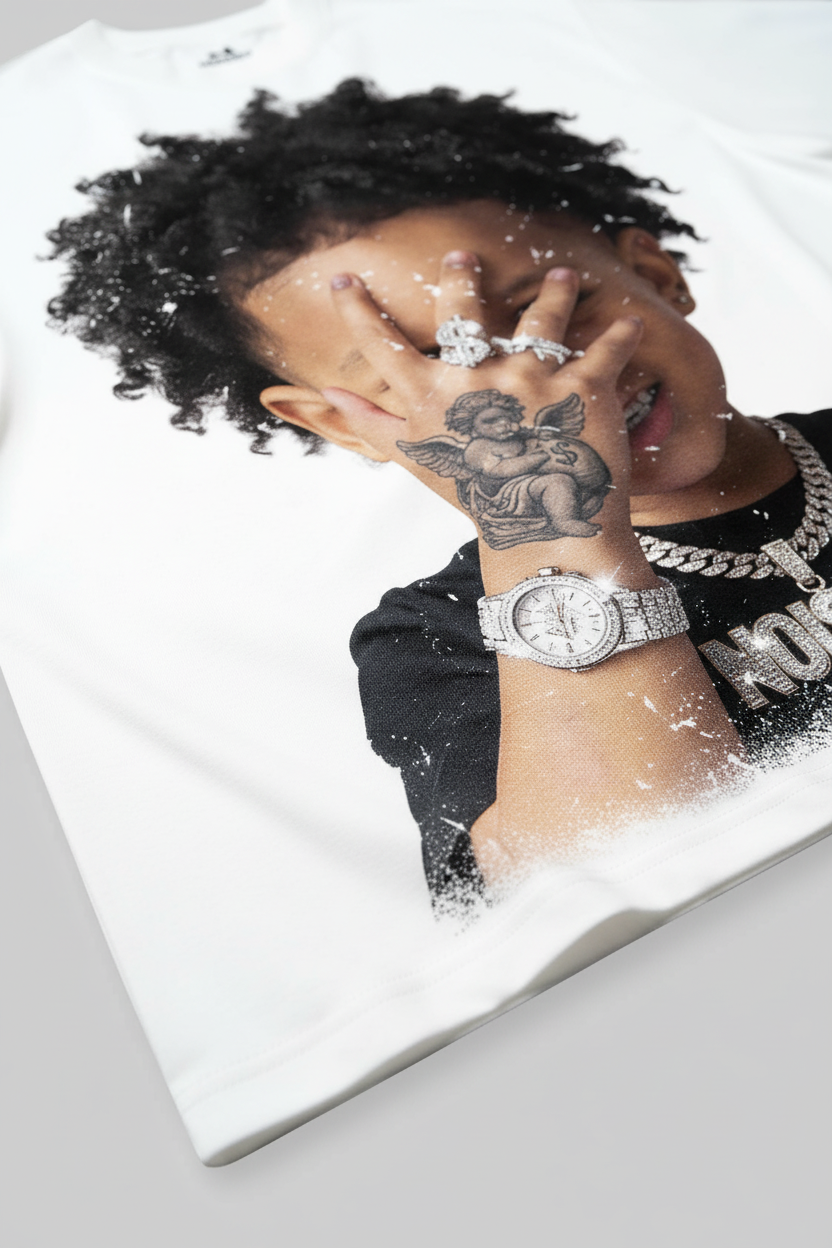 This T-shirt boasts a trendy boxy fit: shorter in length, wider in cut, with longer, looser sleeves. The unique "Baby Street Flex" print adds a touch of urban flair. Perfect for those seeking comfort and a bold, relaxed style. Grab yours now!