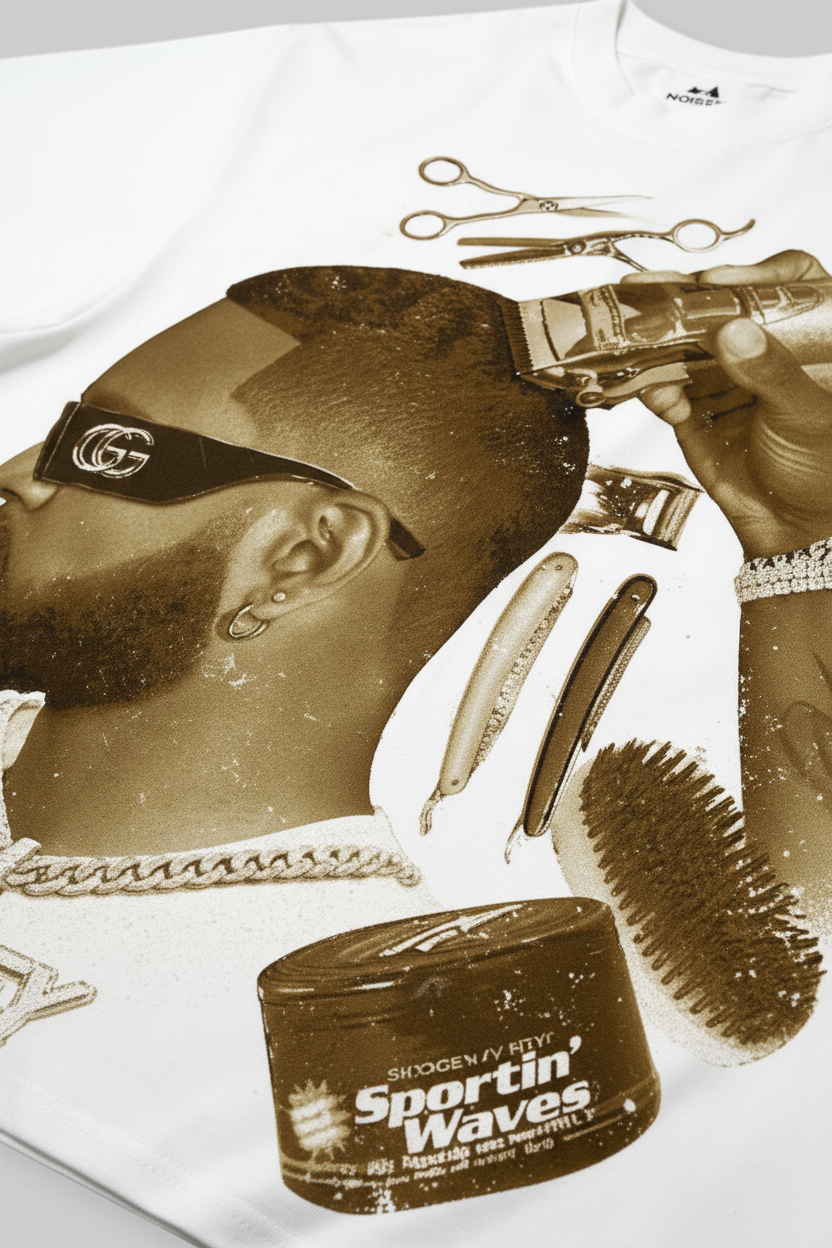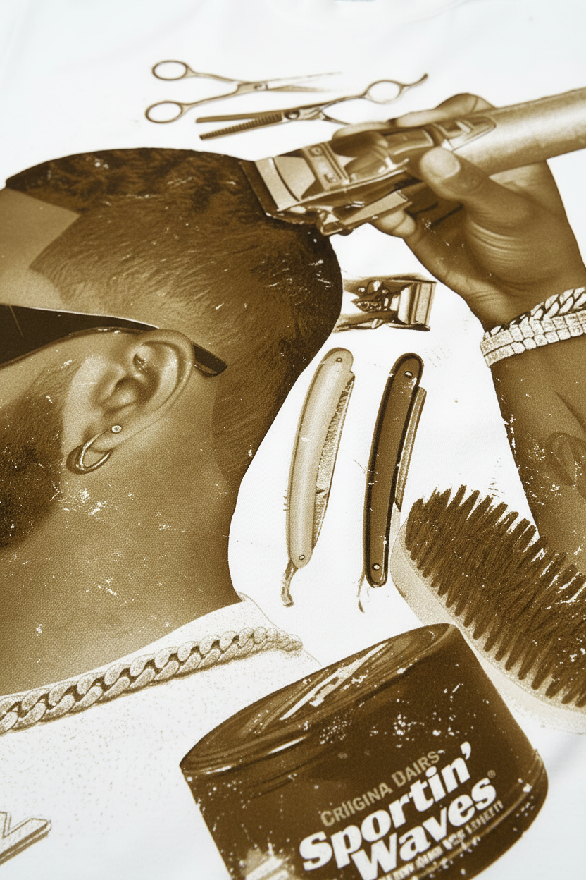 Barbershop Character Art Collage Poster Printed Boxy Oversized T-shirt