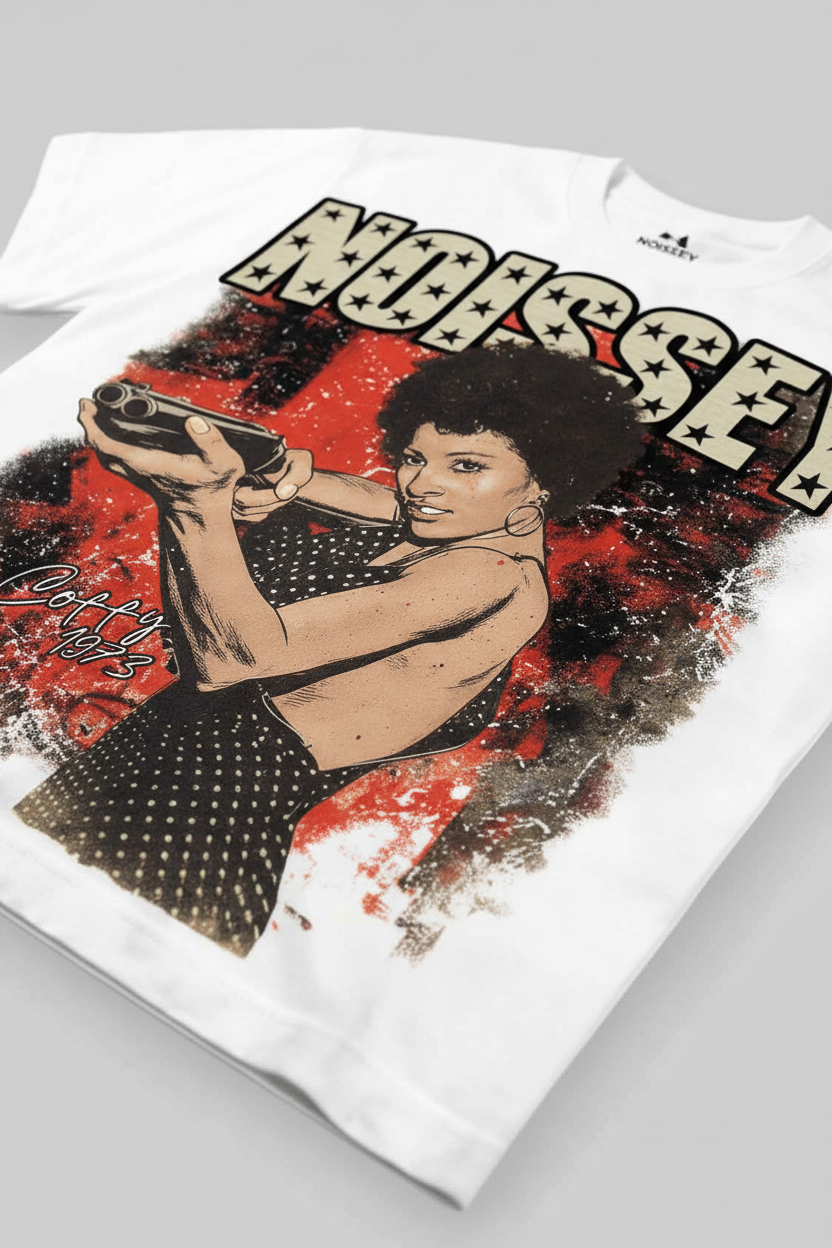 This T-shirt is full of charm! Featuring characters from the classic retro movie "Coffy" poster, it exudes a vintage vibe and unique taste. Made of high-quality fabric, it's comfy and breathable. Wear it to be the spotlight in crowds, embracing retro fashion effortlessly!