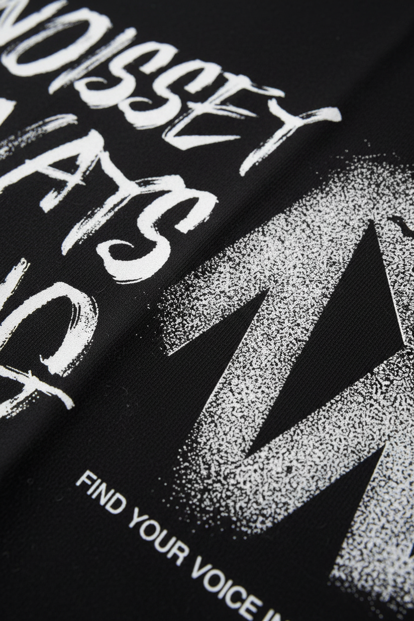 This tee features a sleek black base with bold white back print, embodying individuality. Infused with NOISSEY's spirit of “FIND YOUR VOICE IN THE NOISE”, it encourages constant progress and authentic expression. Premium fabric, comfortable cut, perfect for daily wear to showcase unique style.