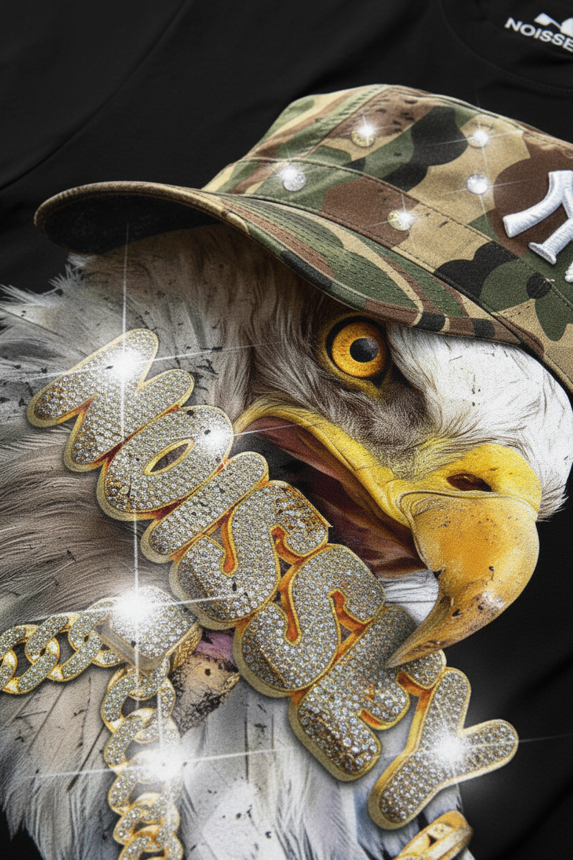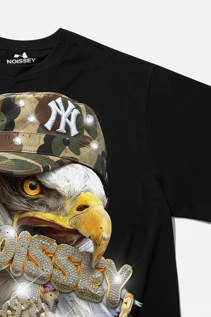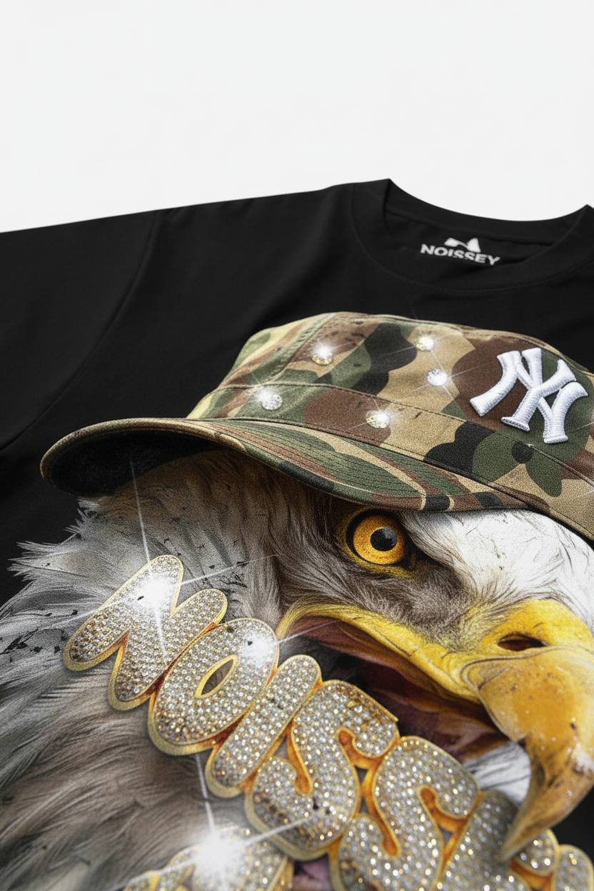 Eagle with Camo Cap Print Boxy Oversized T-shirt