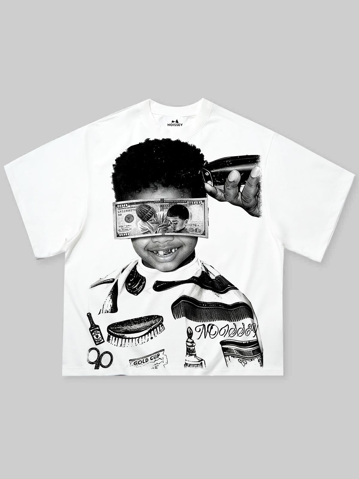 "Memorable Moments" character-printed Boxy oversized T-shirt, featuring a classic boxy fit with a cropped length, roomy cut, and extended sleeves for a relaxed vibe. Wear your cherished memories and freeze beautiful moments in style, easily becoming a street highlight!