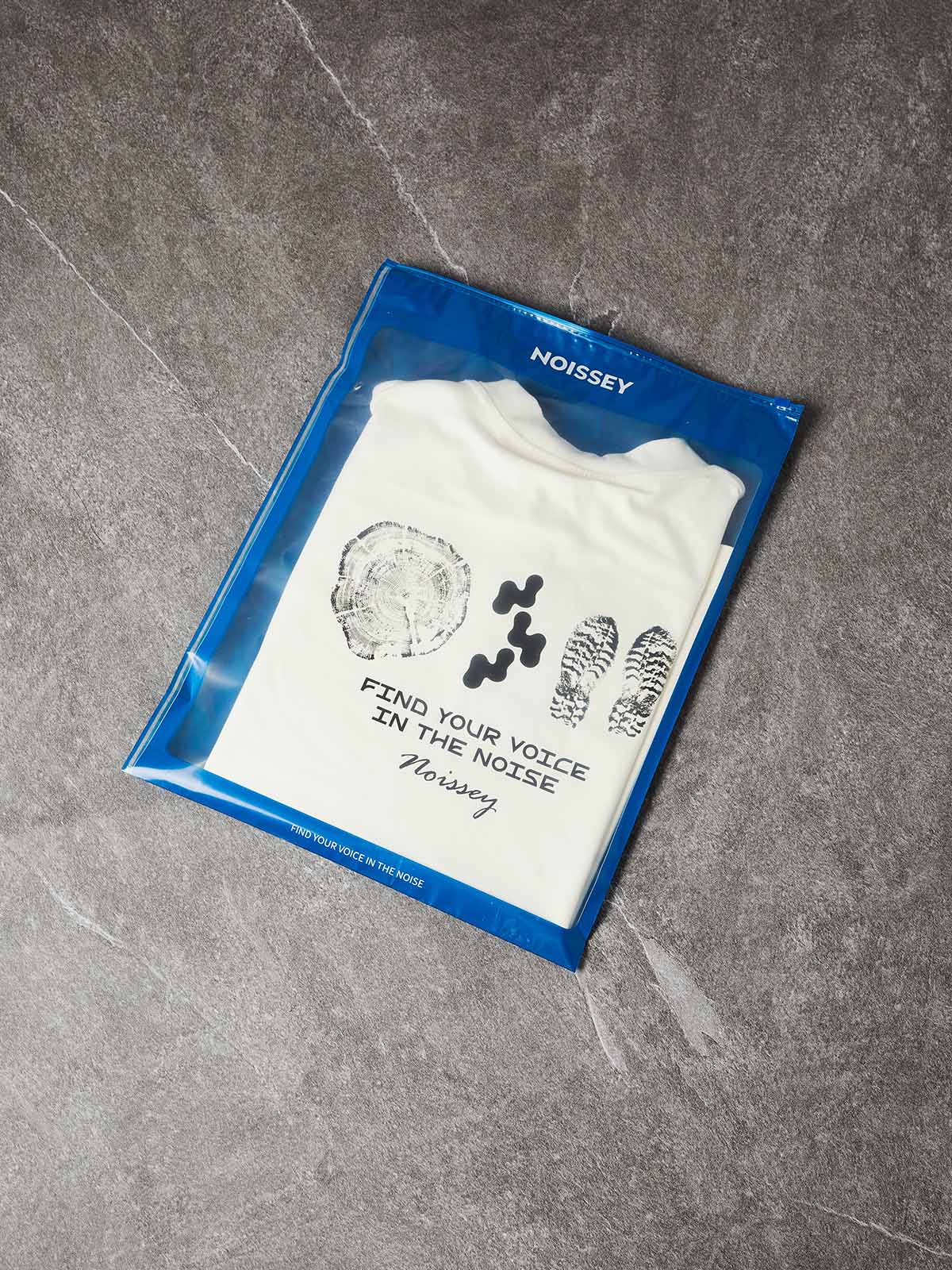 The Hook: Faith in the wild. Motion in the stillness. This piece reimagines the NOISSEY identity through a high-gloss, liquid-chrome lens. The distorted, melting aesthetic on the back contrasts with a clean, circular chest logo, capturing the fluid energy of urban exploration in a classic oversized silhouette.
