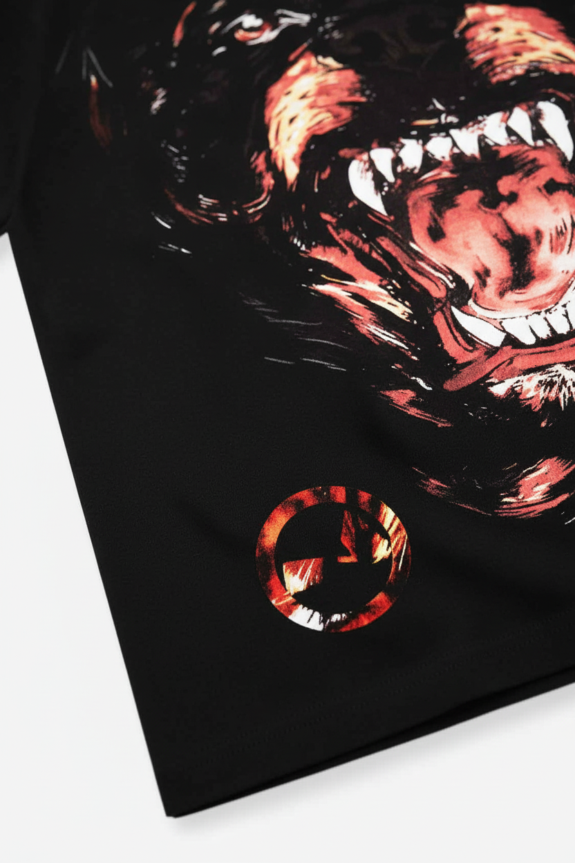 The Hook: Faith in the wild. Darkness in the roar. This piece unleashes a raw, aggressive energy through its high-contrast "Ferocious Hound" graphic, embodying an uncompromising dark aesthetic designed for the modern urban rebel.