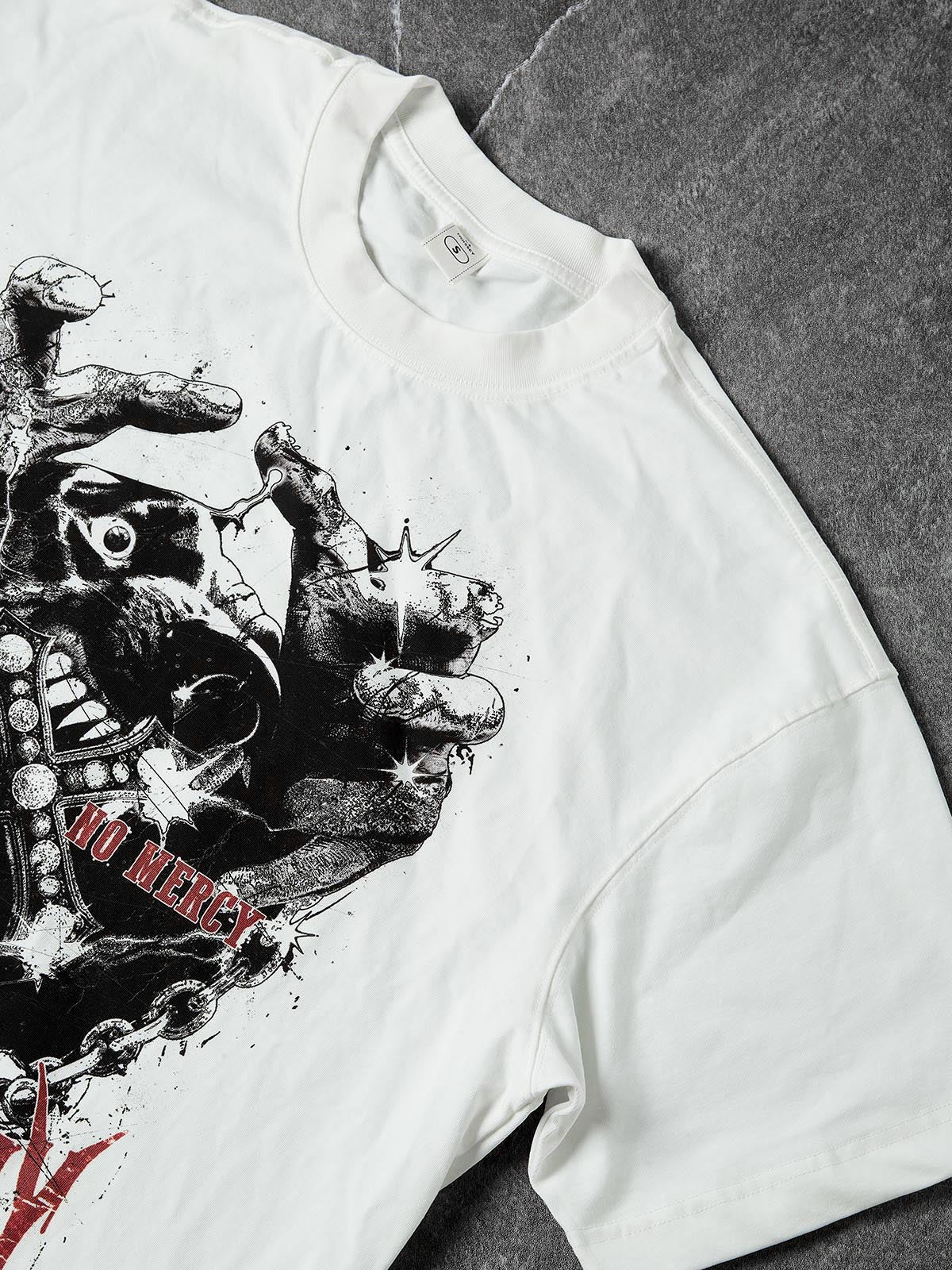 Size Recommendation: Take your standard size for the intended oversized look. The high-quality composite fabric provides a stable, heavyweight drape that enhances the aggressive graphic.