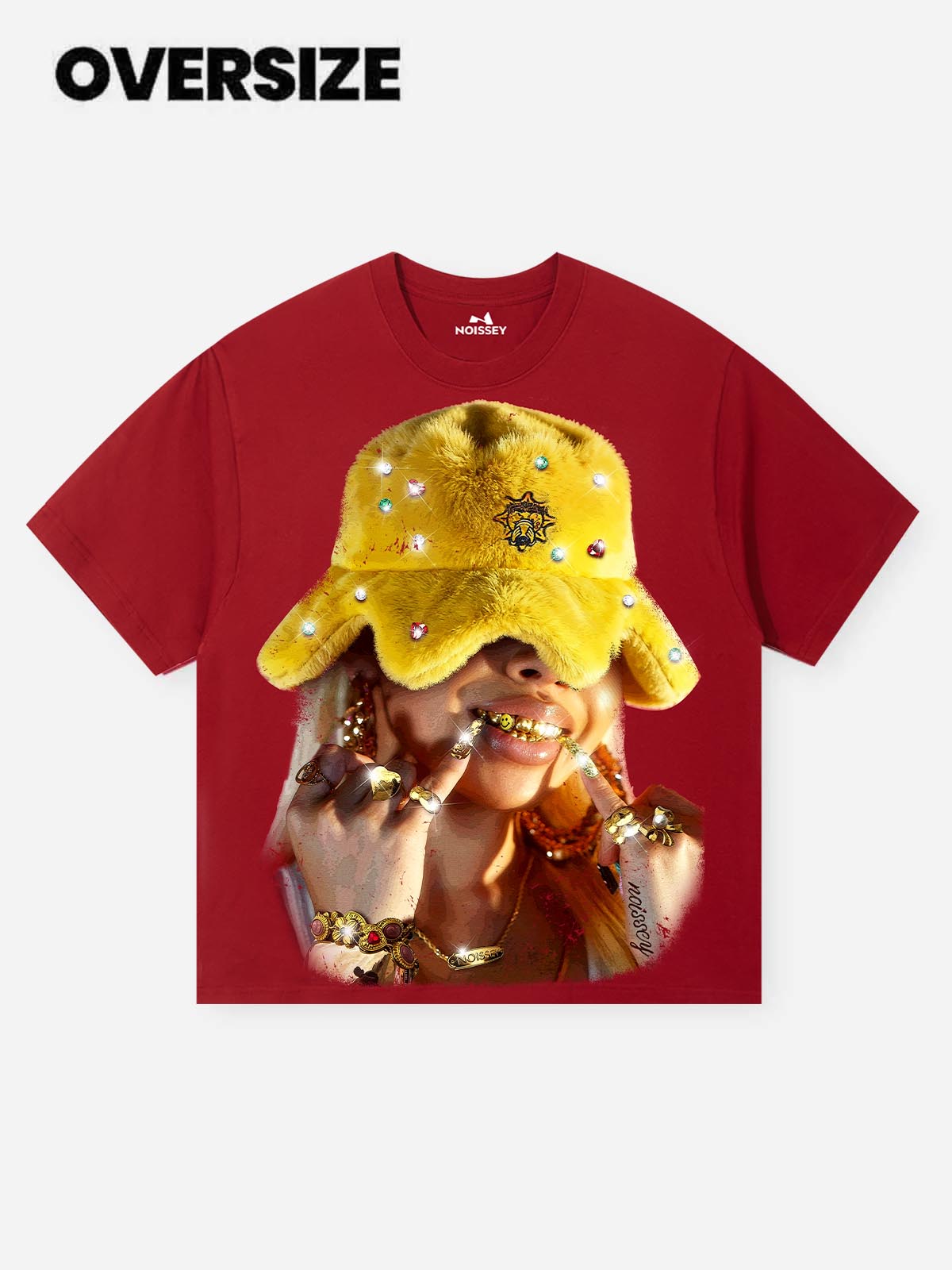 This red printed T-shirt is eye-catching! The octopus balaclava hat headwear design is fun and unique. Wear it to stand out and show your trendy personality. Get it and start your unique fashion journey!