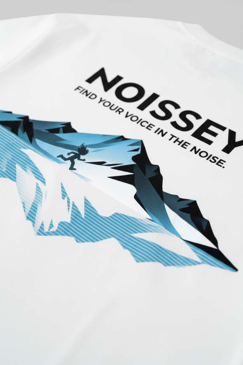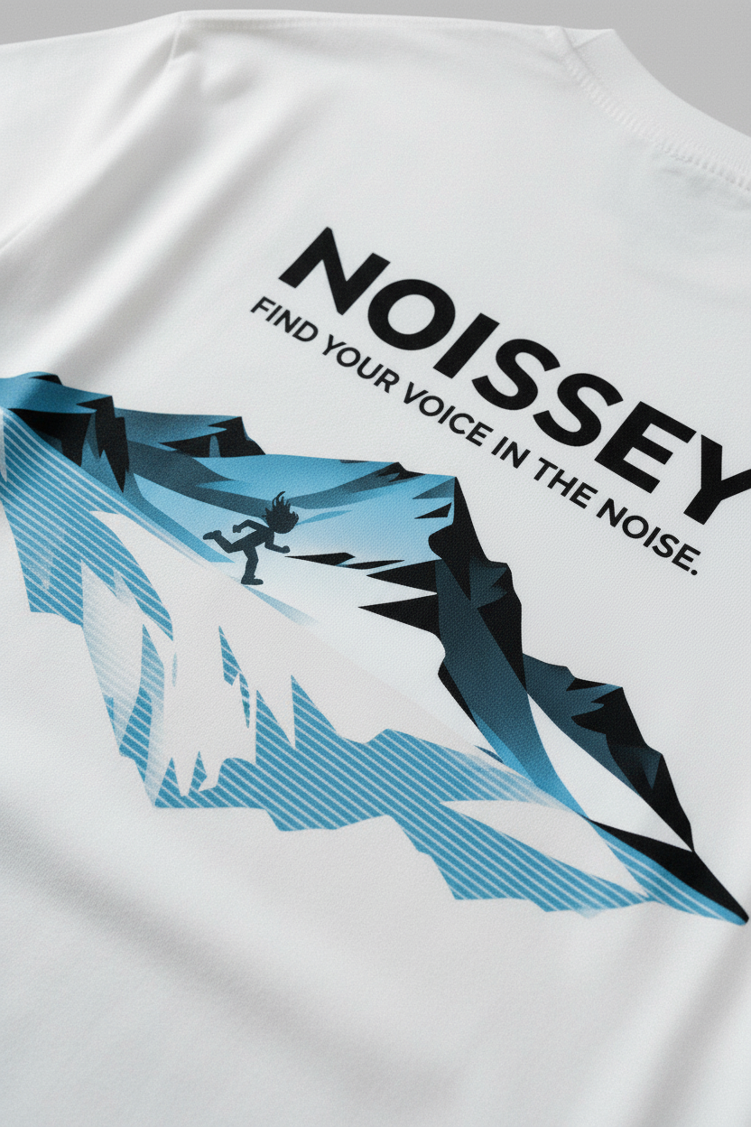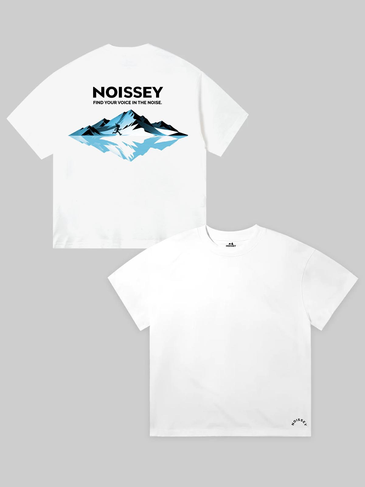 This Peak Exploration in Noise short sleeve tee draws inspiration from exploration and breakthrough. The pure white base with glacier mountain graphics symbolizes finding your voice amidst the noise. NOISSEY's motto "FIND YOUR VOICE IN THE NOISE" inspires you to express yourself bravely. Unique cut, comfortable fabric, suitable for all occasions.